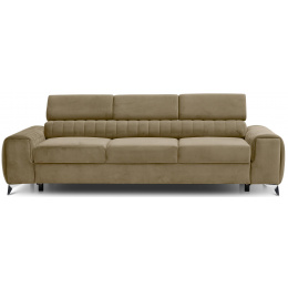 The Laurence couch has a solid wooden frame that rests on slanted, chrome-plated metal legs. This fold-out sofa, wrapped in elegant fabrics from the ELTAP collection, has a seat filled with HR and T30 foams. In addition, the piece of furniture is supported by the solid B-type wave springs, which provide a sense of comfort and convenience. The Laurence couch brings lightness and style to the interior. The classic shape of this piece of furniture is contrasted with stitching and a clearly emphasised division into three seating areas. The Laurence couch is the perfect choice for smaller rooms where you cannot put a corner settee, for example. Its dimensions are: 260 x 97 x 75 centimetres. The height of its legs (10 cm) allows you to clean the floor under the couch with modern cleaning robots. This convertible couch can also become a double bed, which is perfect for transforming any interior into a guest room. The puma plus system was used as the couch’s fold-out mechanism, which requires lifting the seat up and lowering it forward. At the same time, a second sleeping surface automatically slides out from under the seat. The advantage of the puma plus mechanism is that you do not have to worry about damaging the floor when unfolding and folding the sofa. The whole structure is very light and uncomplicated, so anyone can unfold it without any problems. The 199 x 136 centimetres sleeping area provides peaceful sleep for two people.