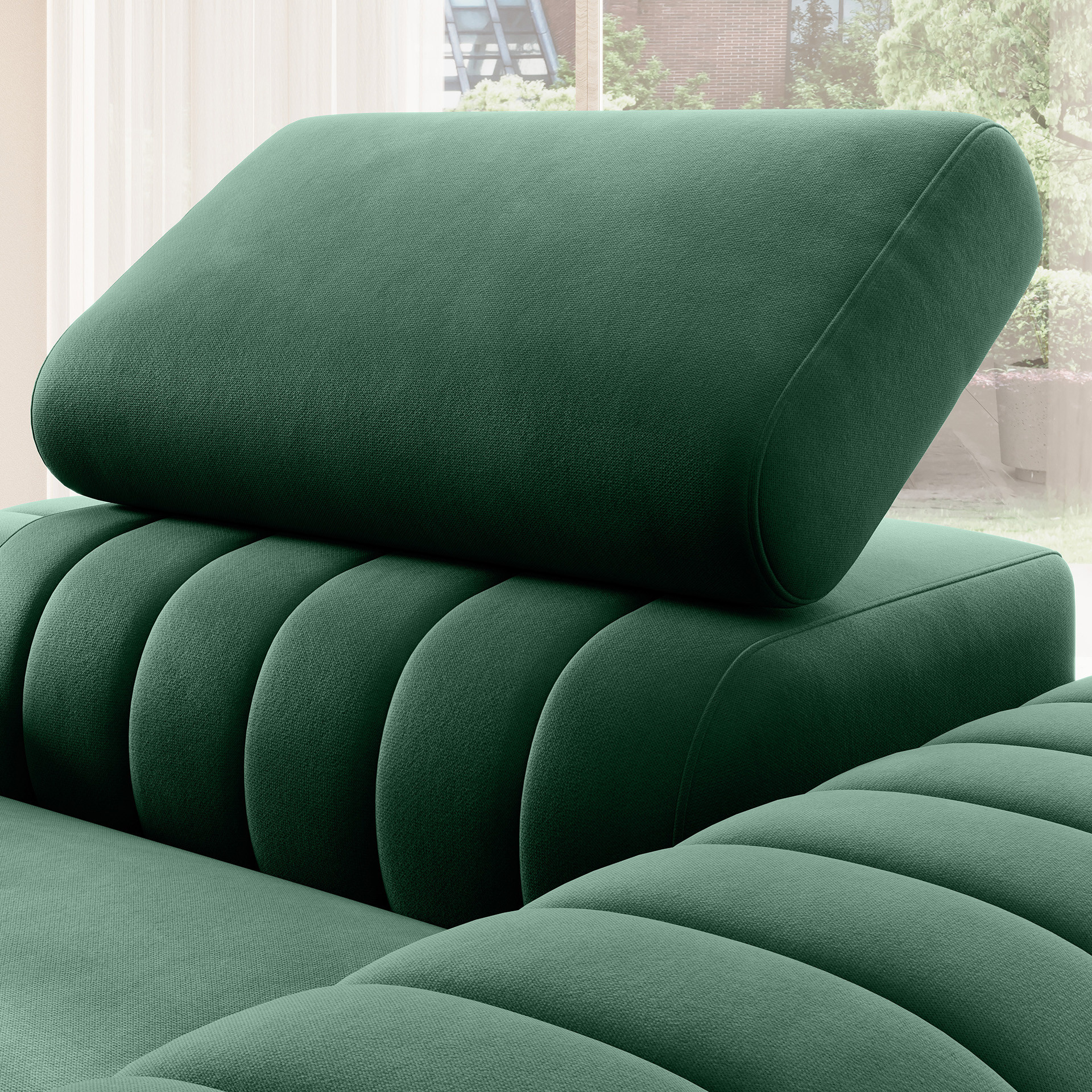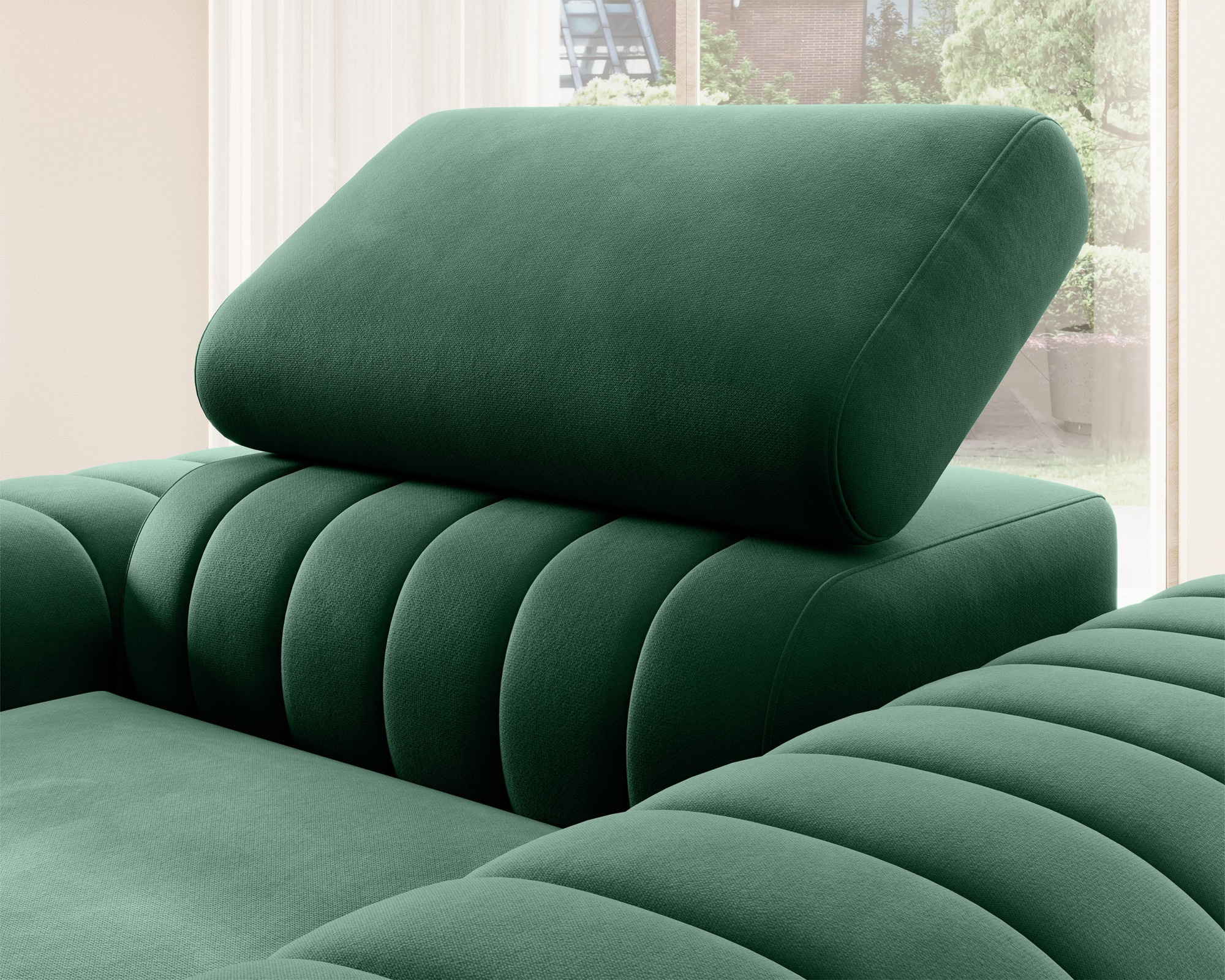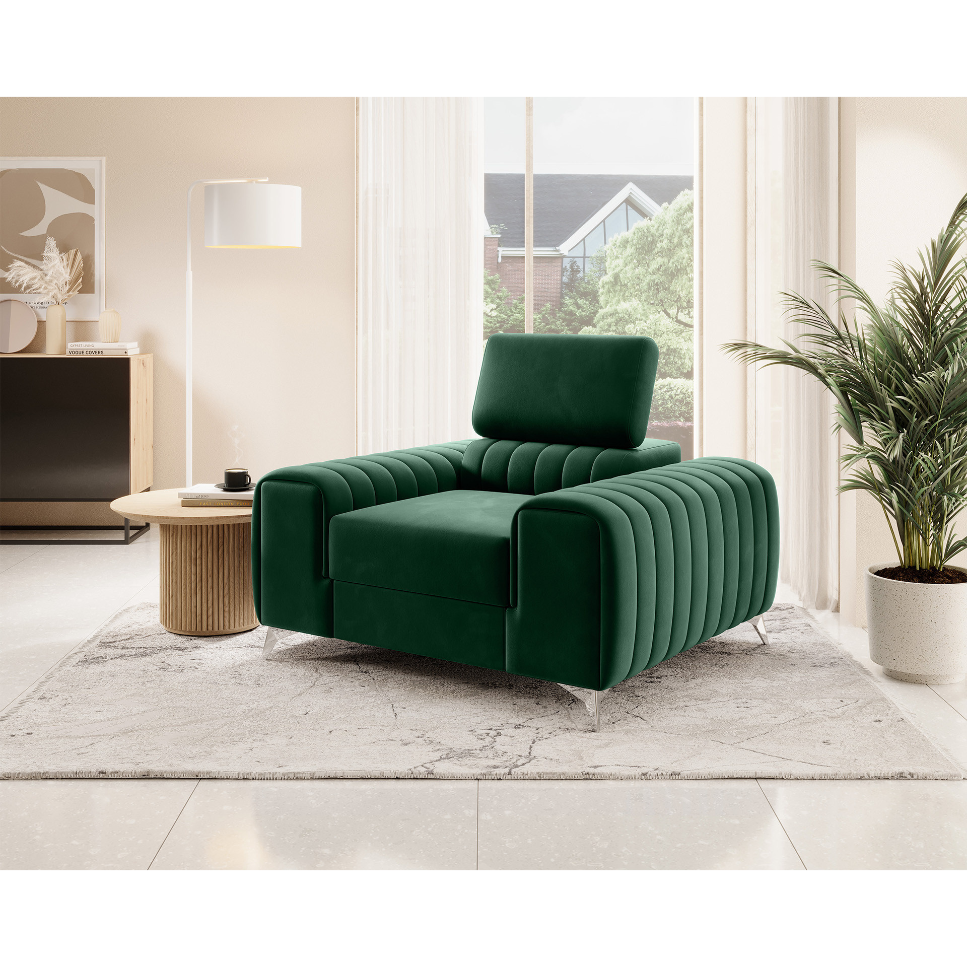 The Laurence armchair is an elegant and comfortable piece of furniture that impresses not only with its designer look but also with its excellent features. Designed with maximum comfort in mind, this armchair will become a true oasis of relaxation in your interior. Its impressive dimensions of 125 cm width and 97 cm depth provide ample seating space. The varied height of the armchair, ranging from 55 to 75 cm, allows for adjustment to individual user preferences. Meanwhile, the seat height of 35 cm ensures a comfortable sitting position. With a seat depth of 55 cm, it guarantees proper back support and a comfortable posture. The Laurence armchair has been designed for users of different heights, which is why the backrest height is adjustable within the range of 30 to 45 cm. This allows for customization according to personal preferences and provides optimal spinal support. Equipped with an adjustable headrest, it allows for tailored neck and head support, providing additional comfort during relaxation. The sturdy legs made of chrome-plated steel, with a height of 9 cm, not only add elegance to the armchair but also ensure stability and durability. The Laurence armchair is not only about its exceptional appearance but also about its solid construction. The seat is filled with T30 density polyurethane foam in combination with HR foam, which perfectly molds to the body, providing softness and comfort. The backrest, on the other hand, is filled with T2540 density foam, ensuring optimal back support. Decorative stitching adds subtle elegance, highlighting its unique character. What's even better is that the Laurence armchair perfectly complements the Laurence corner sofa, creating a perfect furniture set for your interior. This allows you to create a cohesive and harmonious arrangement that will impress all your guests. The Laurence armchair is a combination of style, comfort, and functionality, making your relaxation time even more relaxing and enjoyable.