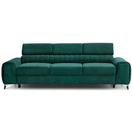 The Laurence couch has a solid wooden frame that rests on slanted, chrome-plated metal legs. This fold-out sofa, wrapped in elegant fabrics from the ELTAP collection, has a seat filled with HR and T30 foams. In addition, the piece of furniture is supported by the solid B-type wave springs, which provide a sense of comfort and convenience. The Laurence couch brings lightness and style to the interior. The classic shape of this piece of furniture is contrasted with stitching and a clearly emphasised division into three seating areas. The Laurence couch is the perfect choice for smaller rooms where you cannot put a corner settee, for example. Its dimensions are: 260 x 97 x 75 centimetres. The height of its legs (10 cm) allows you to clean the floor under the couch with modern cleaning robots. This convertible couch can also become a double bed, which is perfect for transforming any interior into a guest room. The puma plus system was used as the couch’s fold-out mechanism, which requires lifting the seat up and lowering it forward. At the same time, a second sleeping surface automatically slides out from under the seat. The advantage of the puma plus mechanism is that you do not have to worry about damaging the floor when unfolding and folding the sofa. The whole structure is very light and uncomplicated, so anyone can unfold it without any problems. The 199 x 136 centimetres sleeping area provides peaceful sleep for two people.