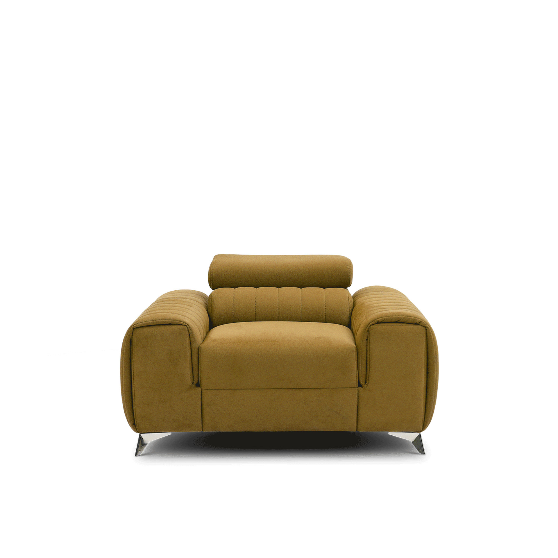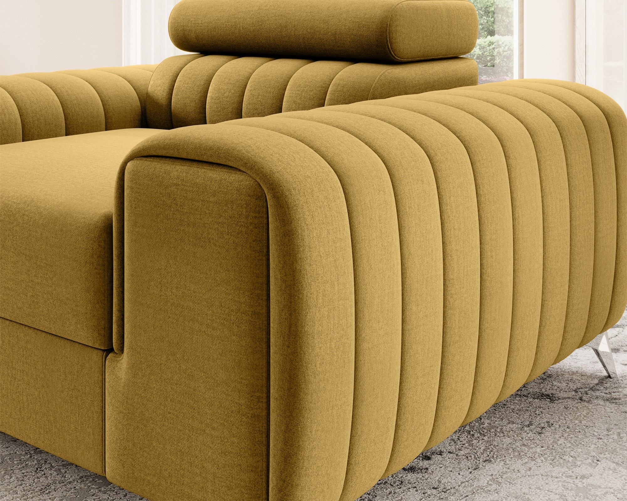 The Laurence armchair is an elegant and comfortable piece of furniture that impresses not only with its designer look but also with its excellent features. Designed with maximum comfort in mind, this armchair will become a true oasis of relaxation in your interior. Its impressive dimensions of 125 cm width and 97 cm depth provide ample seating space. The varied height of the armchair, ranging from 55 to 75 cm, allows for adjustment to individual user preferences. Meanwhile, the seat height of 35 cm ensures a comfortable sitting position. With a seat depth of 55 cm, it guarantees proper back support and a comfortable posture. The Laurence armchair has been designed for users of different heights, which is why the backrest height is adjustable within the range of 30 to 45 cm. This allows for customization according to personal preferences and provides optimal spinal support. Equipped with an adjustable headrest, it allows for tailored neck and head support, providing additional comfort during relaxation. The sturdy legs made of chrome-plated steel, with a height of 9 cm, not only add elegance to the armchair but also ensure stability and durability. The Laurence armchair is not only about its exceptional appearance but also about its solid construction. The seat is filled with T30 density polyurethane foam in combination with HR foam, which perfectly molds to the body, providing softness and comfort. The backrest, on the other hand, is filled with T2540 density foam, ensuring optimal back support. Decorative stitching adds subtle elegance, highlighting its unique character. What's even better is that the Laurence armchair perfectly complements the Laurence corner sofa, creating a perfect furniture set for your interior. This allows you to create a cohesive and harmonious arrangement that will impress all your guests. The Laurence armchair is a combination of style, comfort, and functionality, making your relaxation time even more relaxing and enjoyable.
