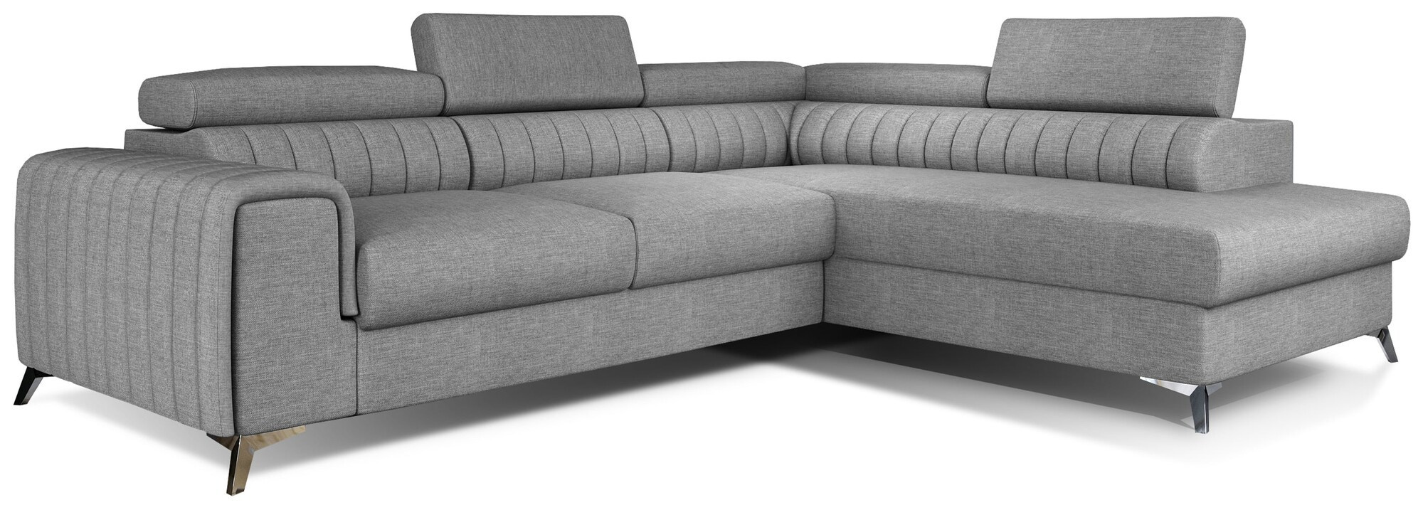 Laurence is a stylish, functional and, above all, elegant corner sofa for discerning connoisseurs of comfort. The high comfort of rest is enhanced by adjustable high headrests and a wide seat. The furniture, measuring 278 x 205 x 92 cm, is made of B-type corrugated spring, T30 and HR foam, which will ensure the highest comfort during daily use of the sofa during the day, as well as the bed after dark, because thanks to the dolphin-type function the Laurence corner is also suitable for night rest. The L-shaped corner sofa is equipped with a sleeping function of 123 x 193 cm. Besides, it also has a spacious bedding container. With elegant stitching and 9 cm steel legs, the corner sofa is kept in a modern finishing style. The product is available in all fabrics from the Eltap collection. If you are looking for a breath of fresh air and a modernistic finish - Laurence will certainly be perfect for you.