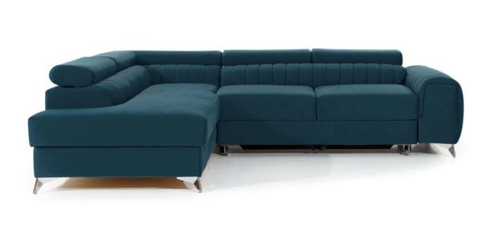Laurence is a stylish, functional and, above all, elegant corner sofa for discerning connoisseurs of comfort. The high comfort of rest is enhanced by adjustable high headrests and a wide seat. The furniture, measuring 278 x 205 x 92 cm, is made of B-type corrugated spring, T30 and HR foam, which will ensure the highest comfort during daily use of the sofa during the day, as well as the bed after dark, because thanks to the dolphin-type function the Laurence corner is also suitable for night rest. The L-shaped corner sofa is equipped with a sleeping function of 123 x 193 cm. Besides, it also has a spacious bedding container. With elegant stitching and 9 cm steel legs, the corner sofa is kept in a modern finishing style. The product is available in all fabrics from the Eltap collection. If you are looking for a breath of fresh air and a modernistic finish - Laurence will certainly be perfect for you.