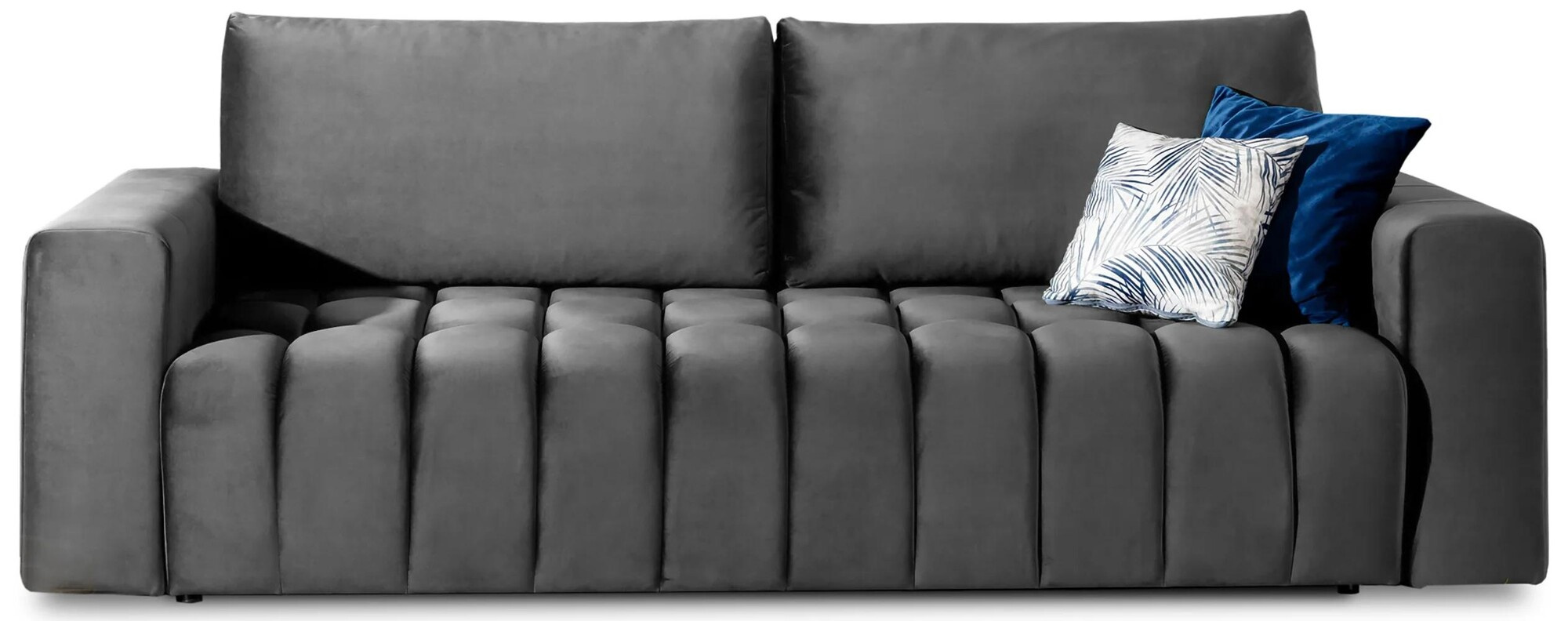 Lazaro is a comfortable, spacious and stylish sofa, measuring 245 x 97 x 85 cm, which certainly catches the eye with its stylish quilting on the seat and stitching on the sides.Features include: an original seat, filled with a combination of T25 foam and HR foam, a contoured backrest, wide armrests and an array of color options in the choice of furniture, as it is available in the full range of colors from the Eltap collection. The sofa can be very easily and quickly transformed into a sizable sleeping area of 195 x 125 cm. It is complemented with a bedding container, assisted by a DL automatic unfolding system. Thanks to the comfortable, functional and stylish Lazaro sofa - your living room will look really grand.