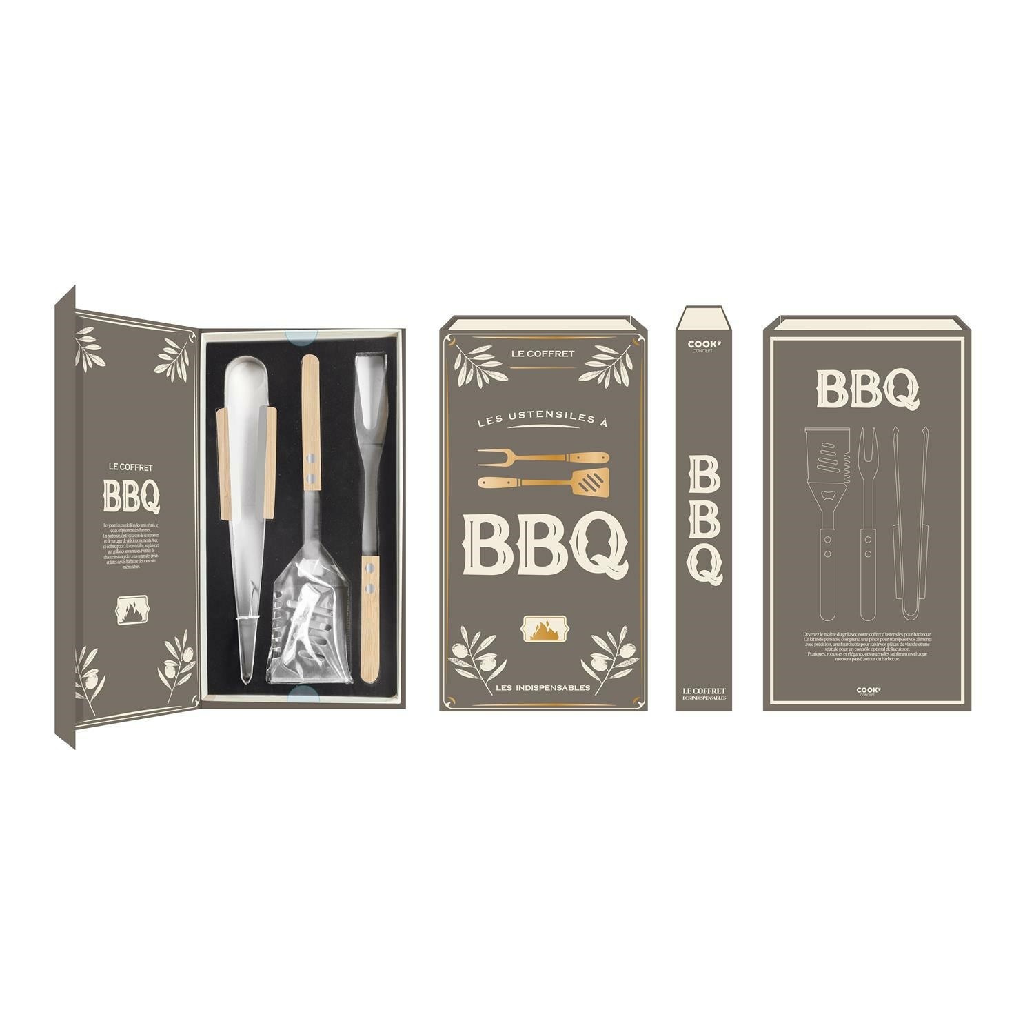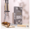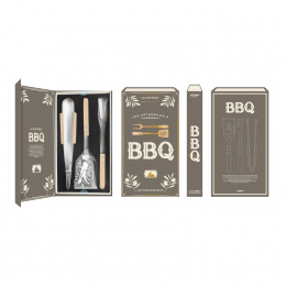 A grillezett ételek tálalására szolgáló készlet ideális konyhai elem annak a személynek, aki szívesen kóstol új és klasszikus ízeket. A készlet tartalmaz egy kétágú villát, fogót és spatulát. A szakácskönyv formájú készlet elegáns tokja a konyha dísze is lehet. A könyvet utánzó tok érdekesen álcázza az eszközöket, mindegyiknek megvan a maga helye a tokban.
