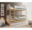 A Leia gyerekágy egy funkcionális megoldás, amely három gyermeket is elfér. A szerkezete két emeletből és egy további kihúzható alsó ágyból áll. A masszív keret biztosítja a stabilitást és a biztonságot, a beépített létra pedig könnyű hozzáférést biztosít a felső szinthez. A felső ágy védőkorlátai biztosítják a gyermek biztonságát alvás közben. Az ágy emellett tágas fiókokkal van felszerelve, amelyek praktikus helyet biztosítanak ágynemű, játékok vagy más gyerek kiegészítők tárolására. Leia a funkcionalitás és a modern dizájn kombinációja, ideális a gyerekszobába.