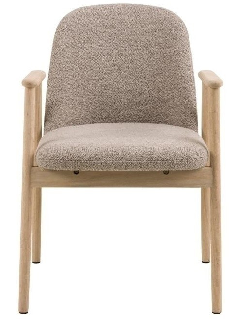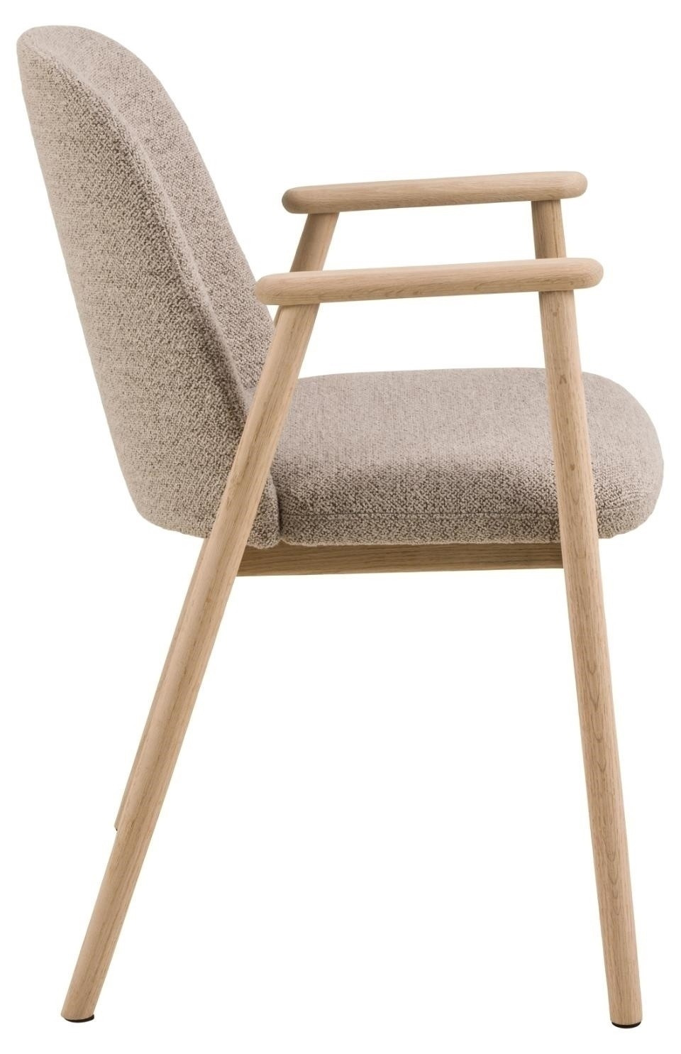 A Leo karfás szék skandináv eleganciát hoz az étkezőbe. Az ülőke bézs színű bouclé szövettel van kárpitozva, amely luxusos, göndör szerkezetével modern és egyben elegáns megjelenést biztosít. A karcsú lábakon álló szék szobrászati jelleget kölcsönöz, és a tölgy kiemeli a skandináv eleganciát. Főbb jellemzők Elegáns étkezőszék karfával és bájos megjelenéssel. Kárpitozva puha bézs bouclé szövettel, amely luxusos göndör textúrával rendelkezik. Olajozott és fehérített tölgyből készült lábak. FSC tanúsítvány Szék súlya: 8,1 kg Összeszerelést igényel. Max. terhelés 110 kg Kartondoboz méretei: 60x77x32 cm.