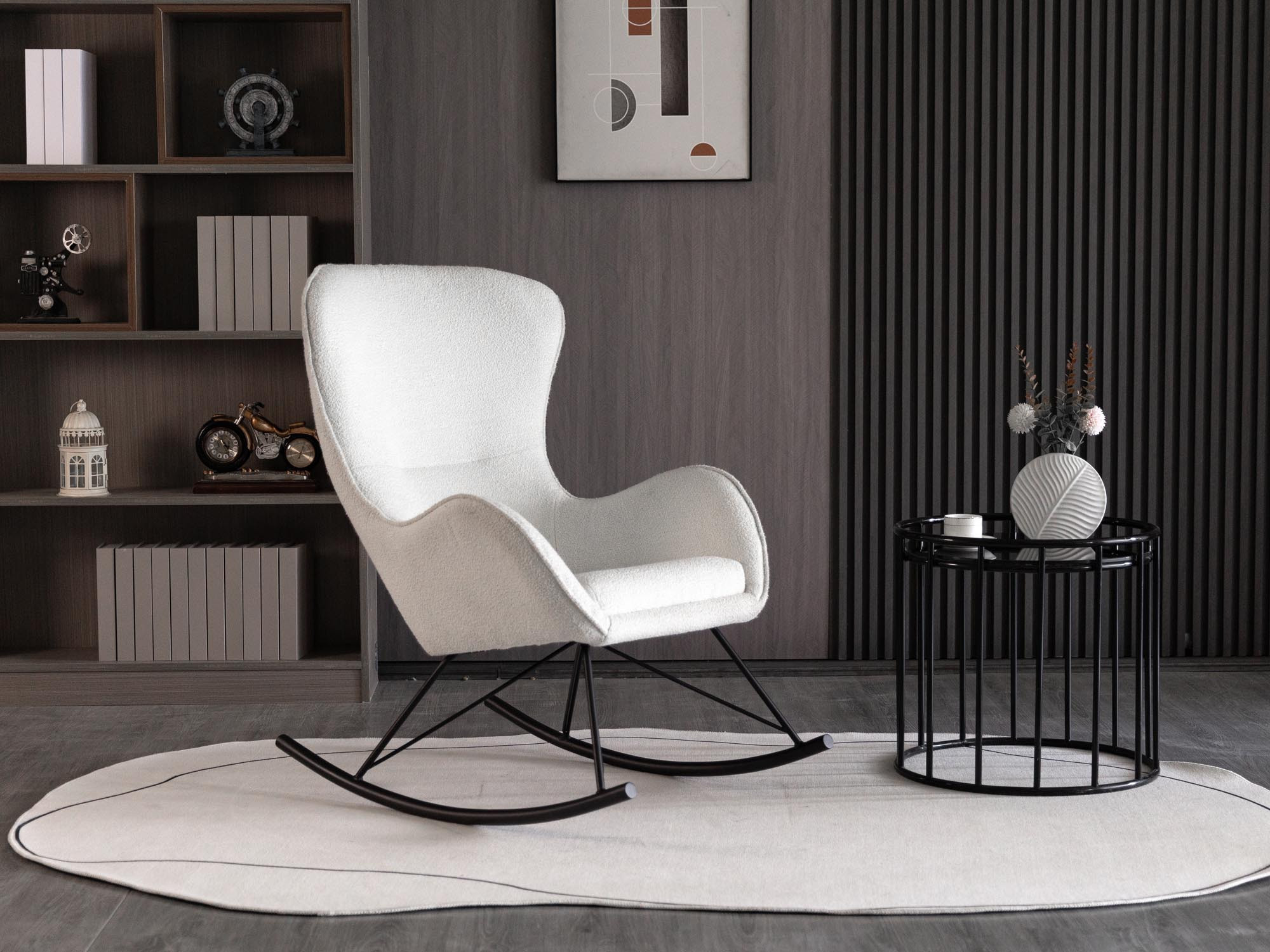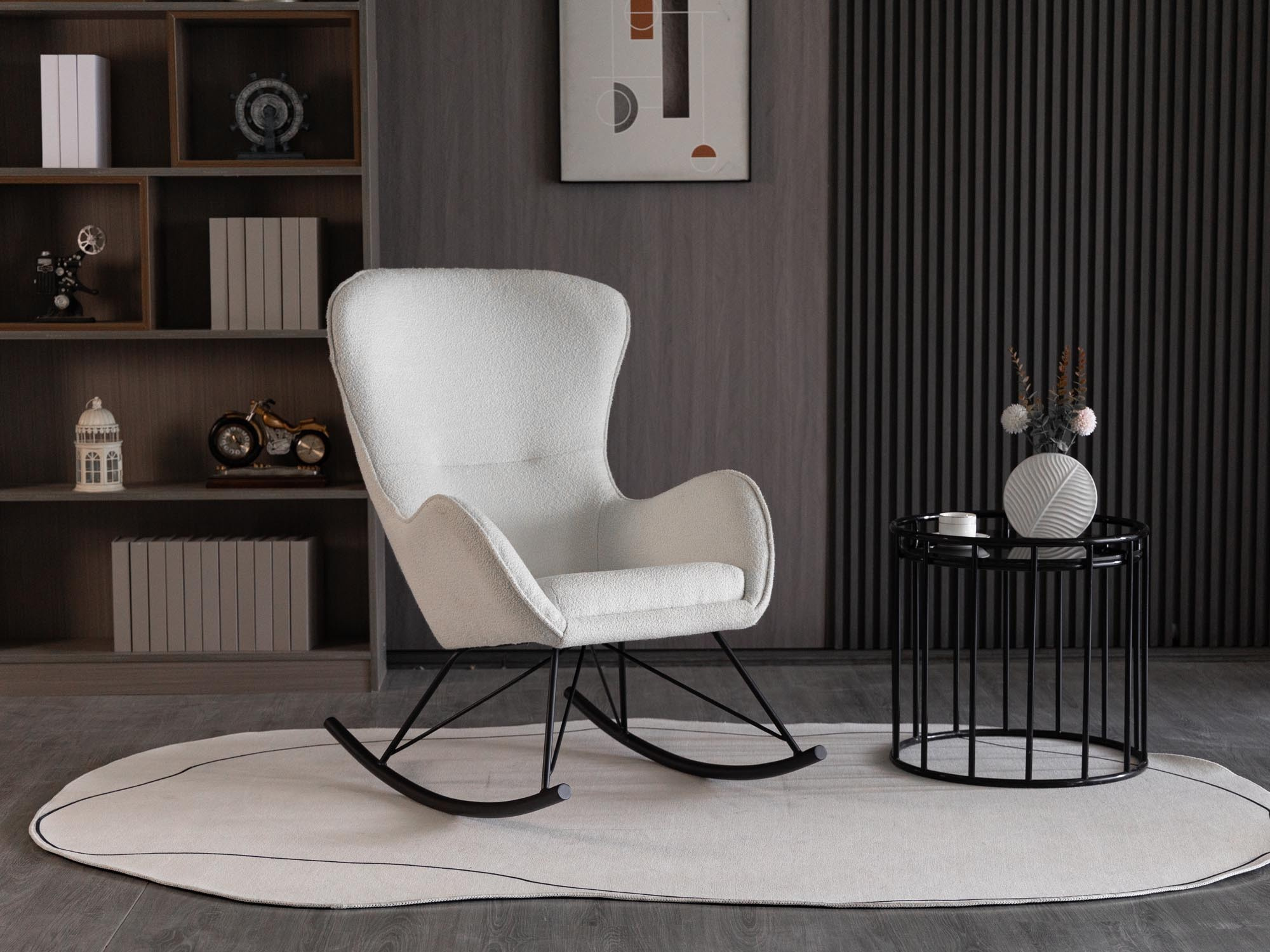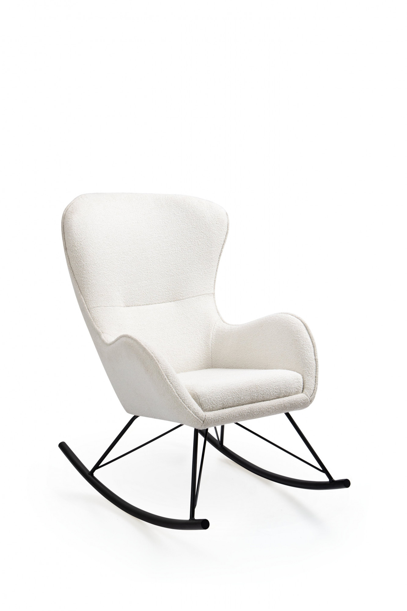 wymiary: 72/100/106/46 cm, materiał: tkanina - bouclé / stal malowana proszkowo / drewno lite, kolor: tapicerka - kremowy , nogi - czarny / naturalny