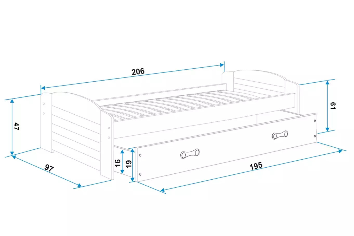 - Rama łóżka - wykonana z drewna sosnowego, pomalowana lakierem wodnym.