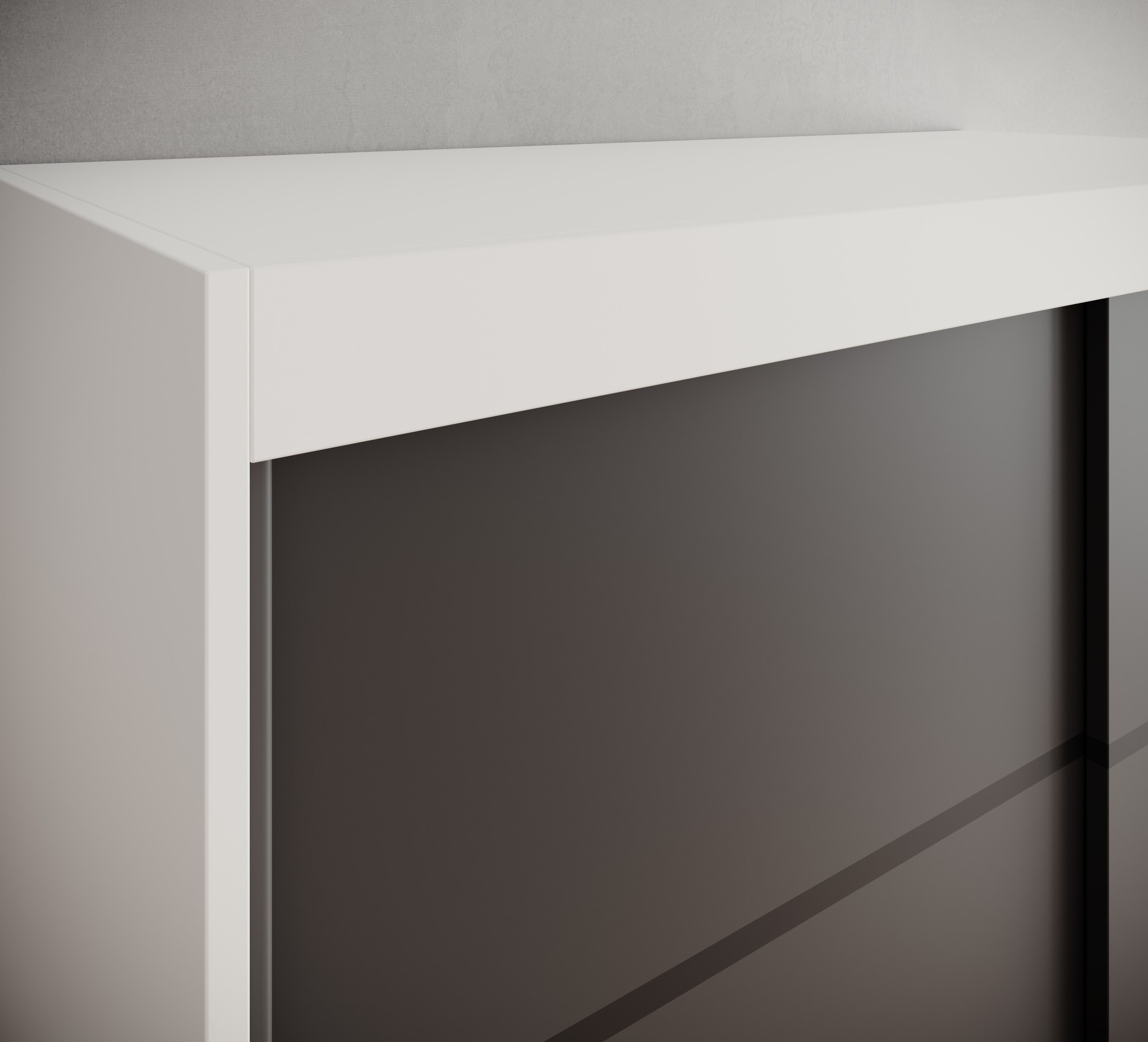 A modern Lizi tolóajtós szekrény 120 cm szélességgel ideális megoldás hálószobába, előszobába vagy gardróbba. Egyszerű, minimalista formája remekül illeszkedik a különböző belsőépítészeti stílusokhoz – a moderntől a klasszikusabb elrendezésekig.A korpus és a frontok tartós, 16 mm vastag laminált lemezből készülnek, ami biztosítja a szerkezet szilárdságát és a mindennapi használattal szembeni ellenállást. A tolóajtó rendszer lehetővé teszi az ajtók kényelmes nyitását még korlátozott térben is, így ez a szekrény kiváló választás kisebb helyiségek számára is.A szekrény funkcionális belső teret kínálnak polcokkal és ruhatartó rúddal, biztosítva a megfelelő helyet ruhák, cipők és kiegészítők tárolására. A belső tér átgondolt elrendezésének köszönhetően a ruhásszekrény rendszerezése egyszerűbbé és hatékonyabbá válik.