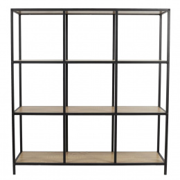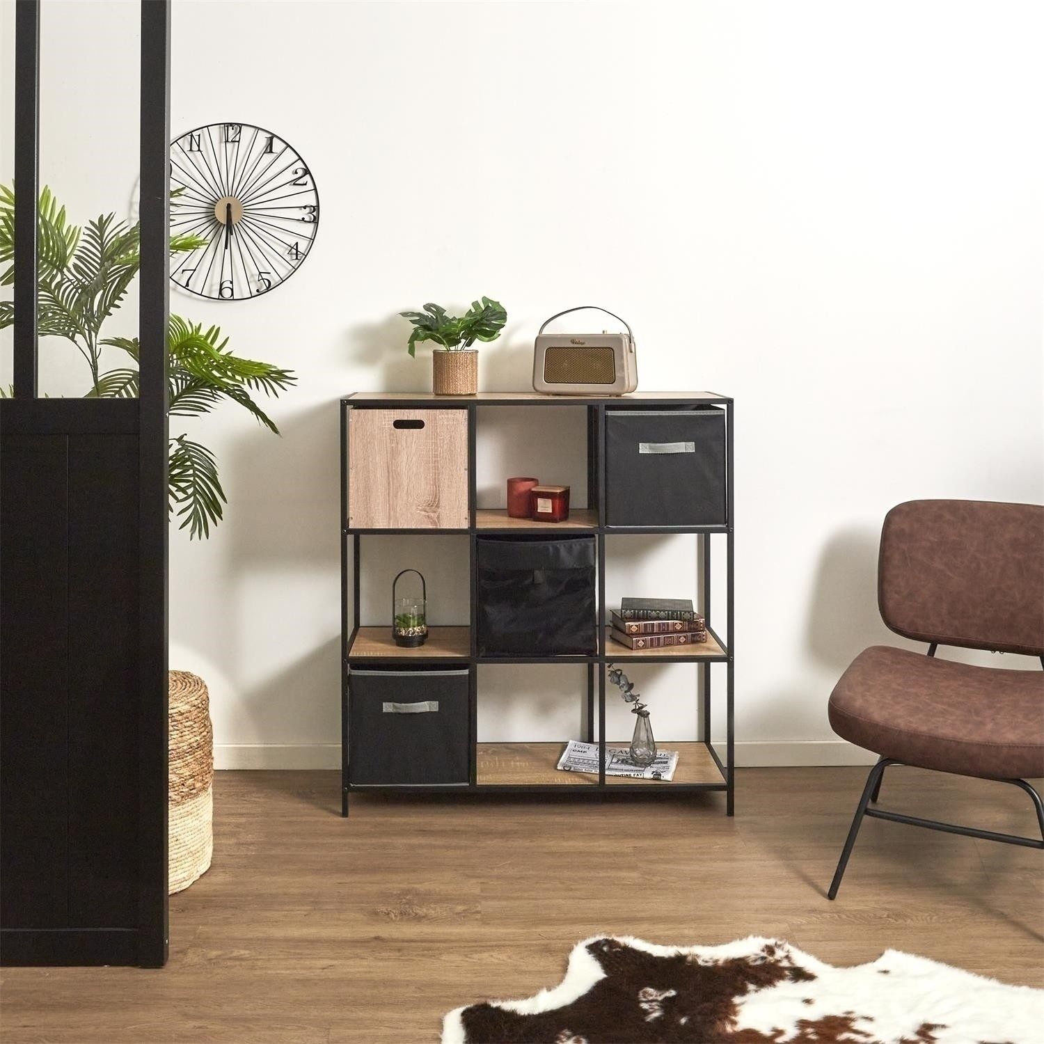 A Loka polc egy minimalista fekete keret és tartós MDF lapból készült polcok kombinációja, amelyek természetes tölgyet utánzó furnérral vannak ellátva. A fém, porszórt fekete keret stabil. A polcnak 5 cm magas lábai vannak. Összeszerelést igényel