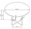 méretek: o120/78/56 cm, anyag: MDF furnér / porszórt acél, szín: asztallap - arany tölgy, lábak - fekete