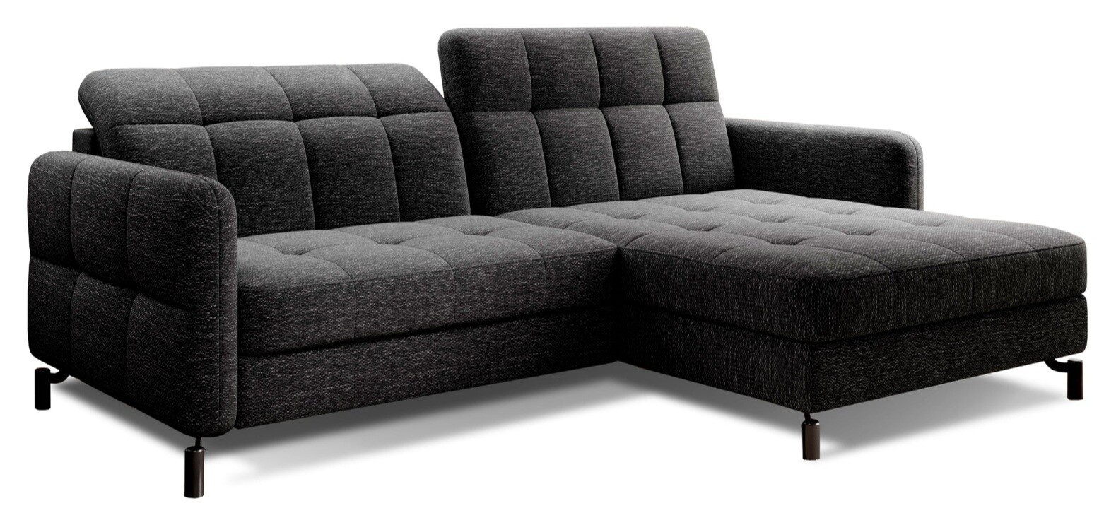 Lorelle is a stylish, elegant and modern corner sofa for our times, which is not only a functional piece of furniture, but can also work perfectly as an apartment decoration. L-shaped Lorelle - with dimensions of 225 x 160 x 105 cm - guarantees spaciousness and comfort during the day, as well as maximum comfort on the sleeping surface of 200 x 110 cm - at night. Thanks to the automatic and intuitive dolphin-type mechanism, unfolding the bed to the sleeping function is pleasant and completely uncomplicated. The advantage of this model is also the capacious storage compartment - a place for bedding - which is located in the ottoman. Positive sensations are enhanced by the way the furniture is made through a B-type corrugated spring, as well as HR + T25 foam, thanks to which the body is stabilized and properly supported while resting. Such a combination provides users, a sense of maximum comfort. Among the distinguishing features of this model, we can certainly include careful, modern finishing, a wide choice of colors, as well as original, stylish black legs of irregular shape. If you are looking for a breath of freshness and an interesting, elegant finish - Lorello will certainly be perfect for you. It is worth applying such a solution in your apartment.