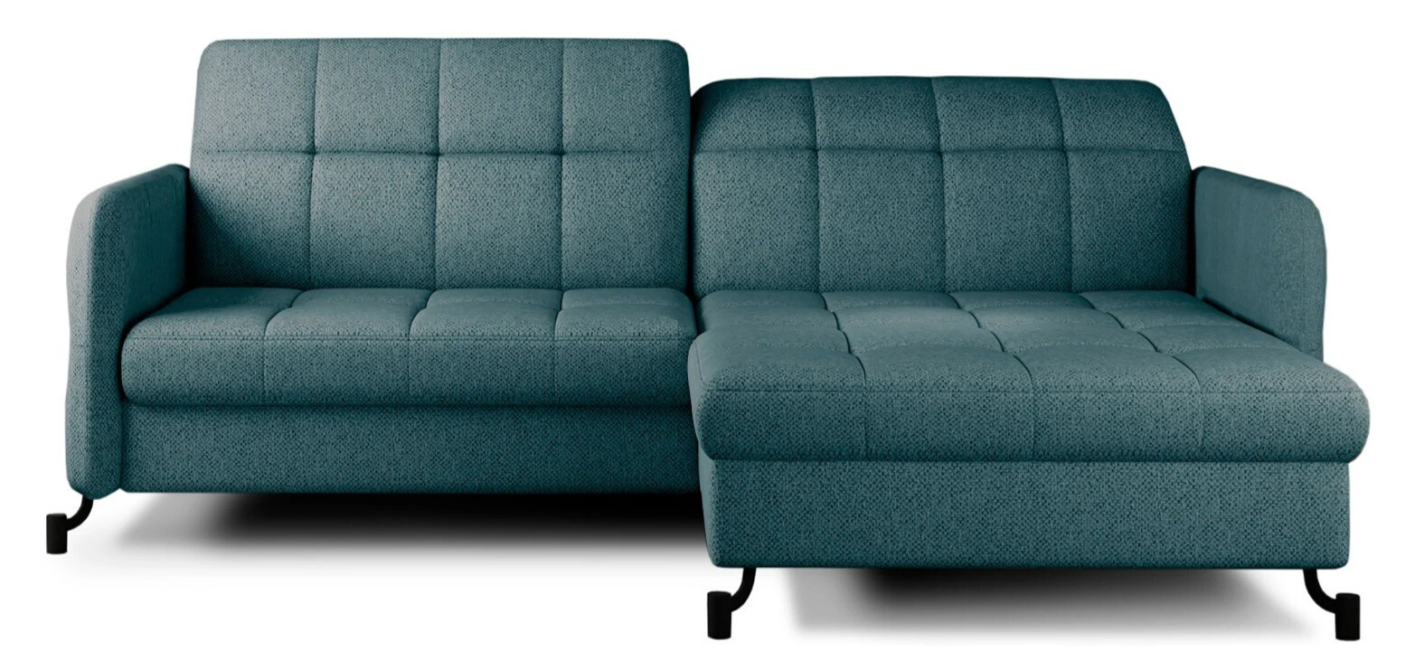 Lorelle is a stylish, elegant and modern corner sofa for our times, which is not only a functional piece of furniture, but can also work perfectly as an apartment decoration. L-shaped Lorelle - with dimensions of 225 x 160 x 105 cm - guarantees spaciousness and comfort during the day, as well as maximum comfort on the sleeping surface of 200 x 110 cm - at night. Thanks to the automatic and intuitive dolphin-type mechanism, unfolding the bed to the sleeping function is pleasant and completely uncomplicated. The advantage of this model is also the capacious storage compartment - a place for bedding - which is located in the ottoman. Positive sensations are enhanced by the way the furniture is made through a B-type corrugated spring, as well as HR + T25 foam, thanks to which the body is stabilized and properly supported while resting. Such a combination provides users, a sense of maximum comfort. Among the distinguishing features of this model, we can certainly include careful, modern finishing, a wide choice of colors, as well as original, stylish black legs of irregular shape. If you are looking for a breath of freshness and an interesting, elegant finish - Lorello will certainly be perfect for you. It is worth applying such a solution in your apartment.