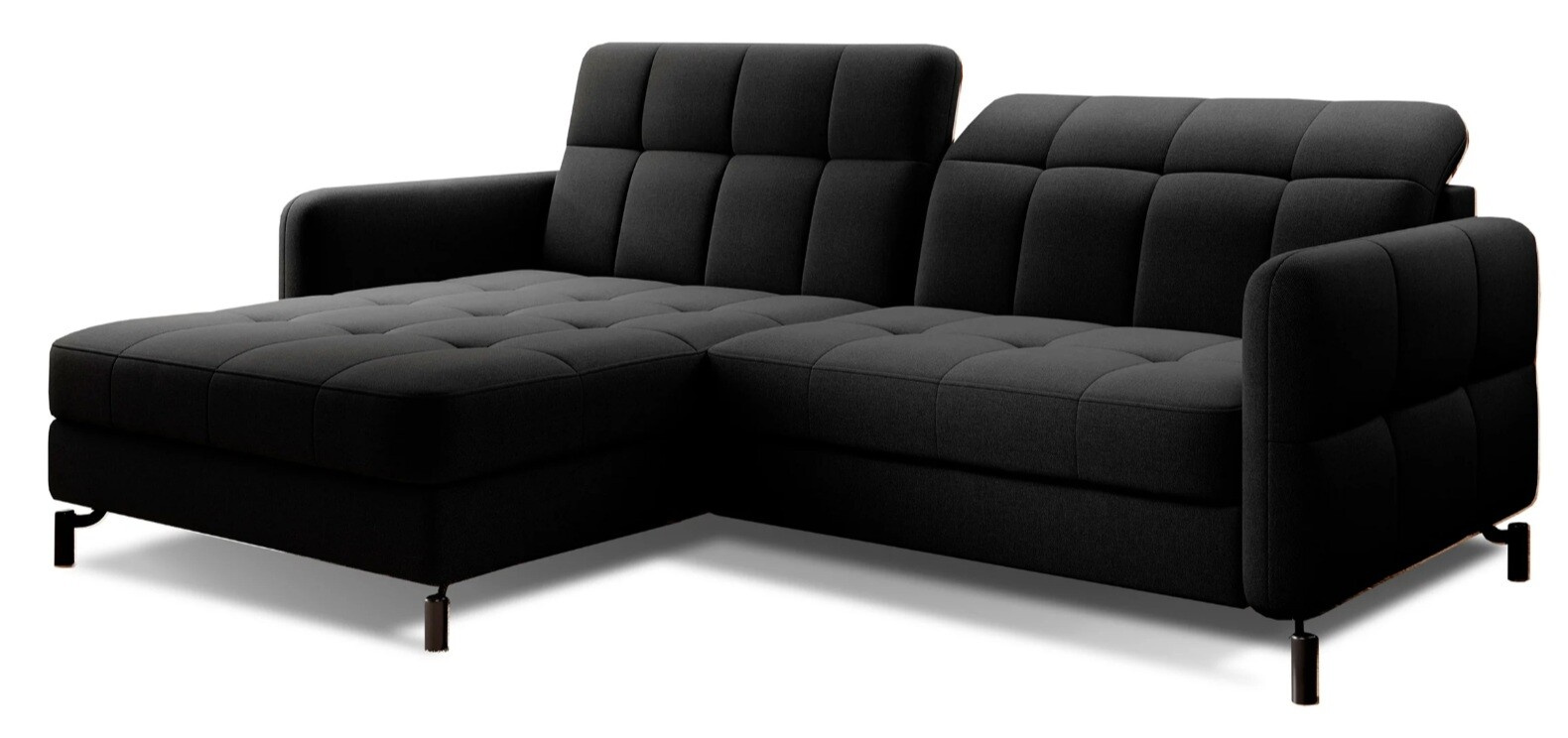 Lorelle is a stylish, elegant and modern corner sofa for our times, which is not only a functional piece of furniture, but can also work perfectly as an apartment decoration. L-shaped Lorelle - with dimensions of 225 x 160 x 105 cm - guarantees spaciousness and comfort during the day, as well as maximum comfort on the sleeping surface of 200 x 110 cm - at night. Thanks to the automatic and intuitive dolphin-type mechanism, unfolding the bed to the sleeping function is pleasant and completely uncomplicated. The advantage of this model is also the capacious storage compartment - a place for bedding - which is located in the ottoman. Positive sensations are enhanced by the way the furniture is made through a B-type corrugated spring, as well as HR + T25 foam, thanks to which the body is stabilized and properly supported while resting. Such a combination provides users, a sense of maximum comfort. Among the distinguishing features of this model, we can certainly include careful, modern finishing, a wide choice of colors, as well as original, stylish black legs of irregular shape. If you are looking for a breath of freshness and an interesting, elegant finish - Lorello will certainly be perfect for you. It is worth applying such a solution in your apartment.