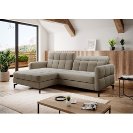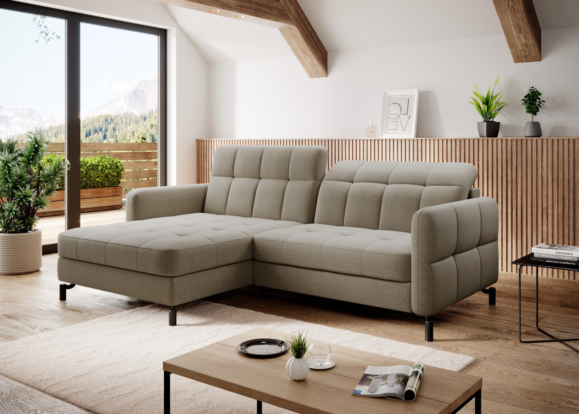 Lorelle is a stylish, elegant and modern corner sofa for our times, which is not only a functional piece of furniture, but can also work perfectly as an apartment decoration. L-shaped Lorelle - with dimensions of 225 x 160 x 105 cm - guarantees spaciousness and comfort during the day, as well as maximum comfort on the sleeping surface of 200 x 110 cm - at night. Thanks to the automatic and intuitive dolphin-type mechanism, unfolding the bed to the sleeping function is pleasant and completely uncomplicated. The advantage of this model is also the capacious storage compartment - a place for bedding - which is located in the ottoman. Positive sensations are enhanced by the way the furniture is made through a B-type corrugated spring, as well as HR + T25 foam, thanks to which the body is stabilized and properly supported while resting. Such a combination provides users, a sense of maximum comfort. Among the distinguishing features of this model, we can certainly include careful, modern finishing, a wide choice of colors, as well as original, stylish black legs of irregular shape. If you are looking for a breath of freshness and an interesting, elegant finish - Lorello will certainly be perfect for you. It is worth applying such a solution in your apartment.