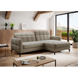 Lorelle is a stylish, elegant and modern corner sofa for our times, which is not only a functional piece of furniture, but can also work perfectly as an apartment decoration. L-shaped Lorelle - with dimensions of 225 x 160 x 105 cm - guarantees spaciousness and comfort during the day, as well as maximum comfort on the sleeping surface of 200 x 110 cm - at night. Thanks to the automatic and intuitive dolphin-type mechanism, unfolding the bed to the sleeping function is pleasant and completely uncomplicated. The advantage of this model is also the capacious storage compartment - a place for bedding - which is located in the ottoman. Positive sensations are enhanced by the way the furniture is made through a B-type corrugated spring, as well as HR + T25 foam, thanks to which the body is stabilized and properly supported while resting. Such a combination provides users, a sense of maximum comfort. Among the distinguishing features of this model, we can certainly include careful, modern finishing, a wide choice of colors, as well as original, stylish black legs of irregular shape. If you are looking for a breath of freshness and an interesting, elegant finish - Lorello will certainly be perfect for you. It is worth applying such a solution in your apartment.