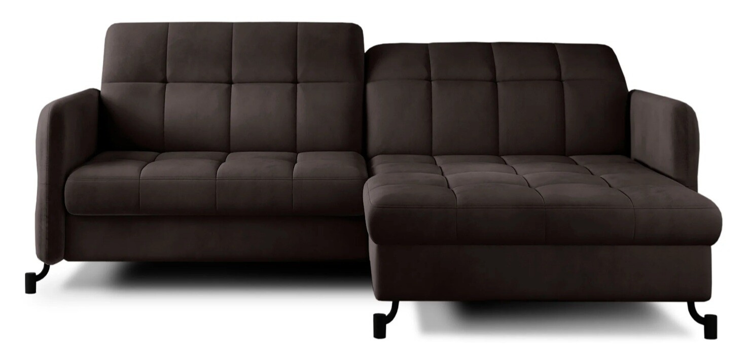 Lorelle is a stylish, elegant and modern corner sofa for our times, which is not only a functional piece of furniture, but can also work perfectly as an apartment decoration. L-shaped Lorelle - with dimensions of 225 x 160 x 105 cm - guarantees spaciousness and comfort during the day, as well as maximum comfort on the sleeping surface of 200 x 110 cm - at night. Thanks to the automatic and intuitive dolphin-type mechanism, unfolding the bed to the sleeping function is pleasant and completely uncomplicated. The advantage of this model is also the capacious storage compartment - a place for bedding - which is located in the ottoman. Positive sensations are enhanced by the way the furniture is made through a B-type corrugated spring, as well as HR + T25 foam, thanks to which the body is stabilized and properly supported while resting. Such a combination provides users, a sense of maximum comfort. Among the distinguishing features of this model, we can certainly include careful, modern finishing, a wide choice of colors, as well as original, stylish black legs of irregular shape. If you are looking for a breath of freshness and an interesting, elegant finish - Lorello will certainly be perfect for you. It is worth applying such a solution in your apartment.