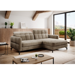 Lorelle is a stylish, elegant and modern corner sofa for our times, which is not only a functional piece of furniture, but can also work perfectly as an apartment decoration. L-shaped Lorelle - with dimensions of 225 x 160 x 105 cm - guarantees spaciousness and comfort during the day, as well as maximum comfort on the sleeping surface of 200 x 110 cm - at night. Thanks to the automatic and intuitive dolphin-type mechanism, unfolding the bed to the sleeping function is pleasant and completely uncomplicated. The advantage of this model is also the capacious storage compartment - a place for bedding - which is located in the ottoman. Positive sensations are enhanced by the way the furniture is made through a B-type corrugated spring, as well as HR + T25 foam, thanks to which the body is stabilized and properly supported while resting. Such a combination provides users, a sense of maximum comfort. Among the distinguishing features of this model, we can certainly include careful, modern finishing, a wide choice of colors, as well as original, stylish black legs of irregular shape. If you are looking for a breath of freshness and an interesting, elegant finish - Lorello will certainly be perfect for you. It is worth applying such a solution in your apartment.