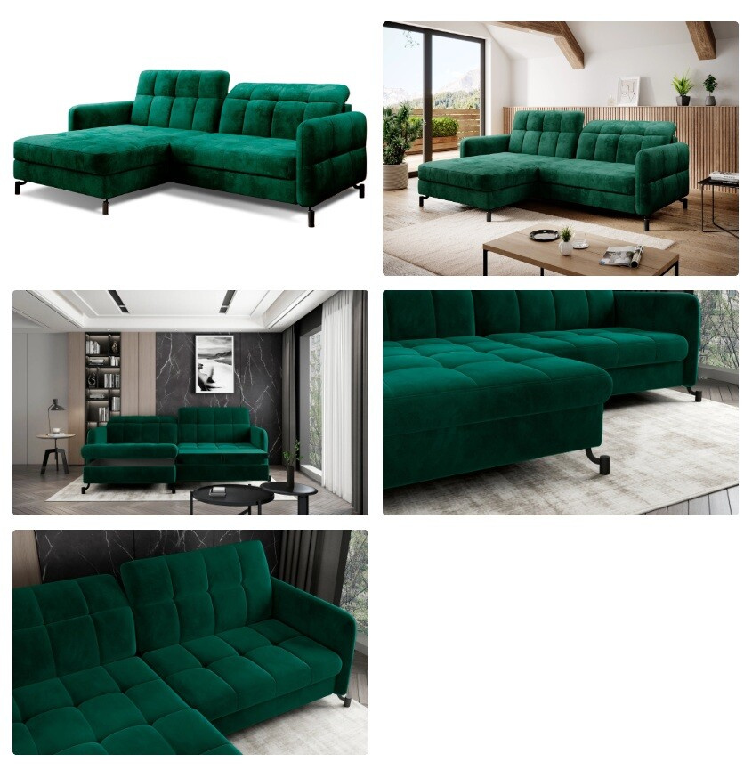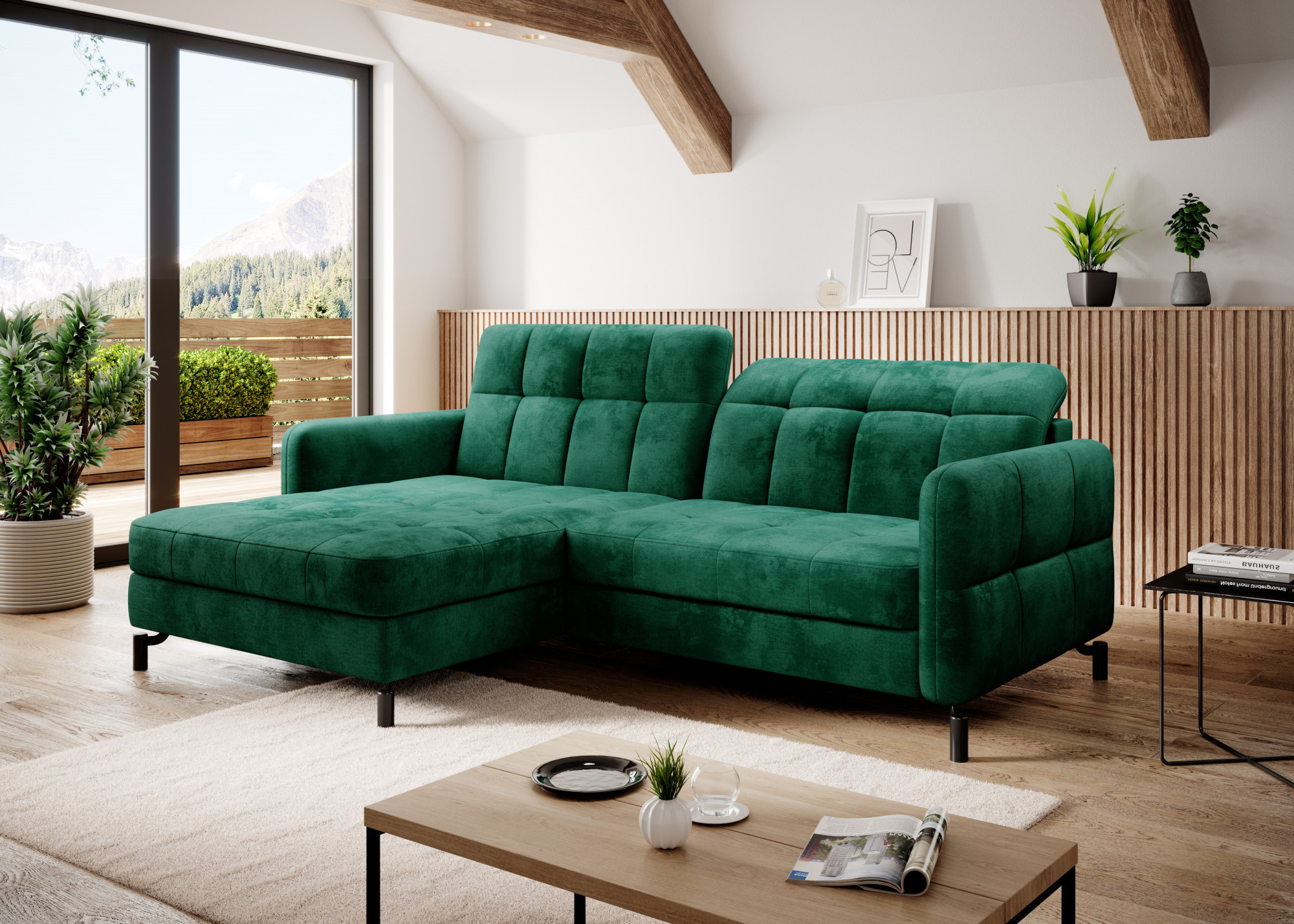 Lorelle is a stylish, elegant and modern corner sofa for our times, which is not only a functional piece of furniture, but can also work perfectly as an apartment decoration. L-shaped Lorelle - with dimensions of 225 x 160 x 105 cm - guarantees spaciousness and comfort during the day, as well as maximum comfort on the sleeping surface of 200 x 110 cm - at night. Thanks to the automatic and intuitive dolphin-type mechanism, unfolding the bed to the sleeping function is pleasant and completely uncomplicated. The advantage of this model is also the capacious storage compartment - a place for bedding - which is located in the ottoman. Positive sensations are enhanced by the way the furniture is made through a B-type corrugated spring, as well as HR + T25 foam, thanks to which the body is stabilized and properly supported while resting. Such a combination provides users, a sense of maximum comfort. Among the distinguishing features of this model, we can certainly include careful, modern finishing, a wide choice of colors, as well as original, stylish black legs of irregular shape. If you are looking for a breath of freshness and an interesting, elegant finish - Lorello will certainly be perfect for you. It is worth applying such a solution in your apartment.