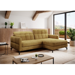 Lorelle is a stylish, elegant and modern corner sofa for our times, which is not only a functional piece of furniture, but can also work perfectly as an apartment decoration. L-shaped Lorelle - with dimensions of 225 x 160 x 105 cm - guarantees spaciousness and comfort during the day, as well as maximum comfort on the sleeping surface of 200 x 110 cm - at night. Thanks to the automatic and intuitive dolphin-type mechanism, unfolding the bed to the sleeping function is pleasant and completely uncomplicated. The advantage of this model is also the capacious storage compartment - a place for bedding - which is located in the ottoman. Positive sensations are enhanced by the way the furniture is made through a B-type corrugated spring, as well as HR + T25 foam, thanks to which the body is stabilized and properly supported while resting. Such a combination provides users, a sense of maximum comfort. Among the distinguishing features of this model, we can certainly include careful, modern finishing, a wide choice of colors, as well as original, stylish black legs of irregular shape. If you are looking for a breath of freshness and an interesting, elegant finish - Lorello will certainly be perfect for you. It is worth applying such a solution in your apartment.