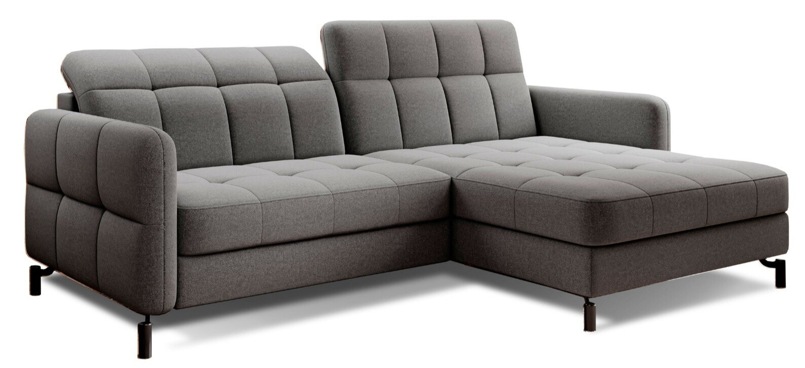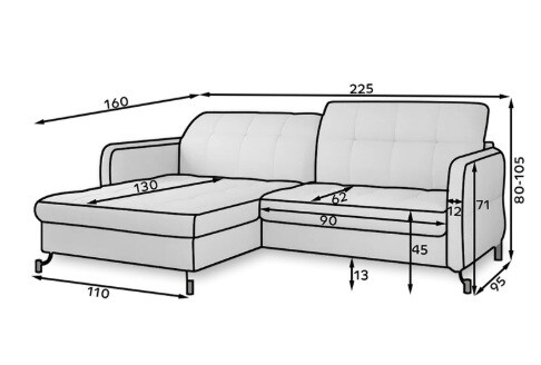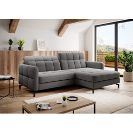 Lorelle is a stylish, elegant and modern corner sofa for our times, which is not only a functional piece of furniture, but can also work perfectly as an apartment decoration. L-shaped Lorelle - with dimensions of 225 x 160 x 105 cm - guarantees spaciousness and comfort during the day, as well as maximum comfort on the sleeping surface of 200 x 110 cm - at night. Thanks to the automatic and intuitive dolphin-type mechanism, unfolding the bed to the sleeping function is pleasant and completely uncomplicated. The advantage of this model is also the capacious storage compartment - a place for bedding - which is located in the ottoman. Positive sensations are enhanced by the way the furniture is made through a B-type corrugated spring, as well as HR + T25 foam, thanks to which the body is stabilized and properly supported while resting. Such a combination provides users, a sense of maximum comfort. Among the distinguishing features of this model, we can certainly include careful, modern finishing, a wide choice of colors, as well as original, stylish black legs of irregular shape. If you are looking for a breath of freshness and an interesting, elegant finish - Lorello will certainly be perfect for you. It is worth applying such a solution in your apartment.