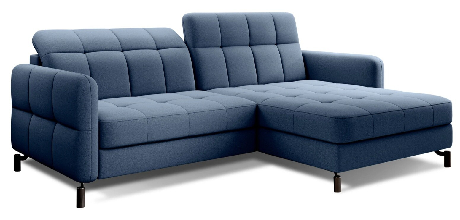 Lorelle is a stylish, elegant and modern corner sofa for our times, which is not only a functional piece of furniture, but can also work perfectly as an apartment decoration. L-shaped Lorelle - with dimensions of 225 x 160 x 105 cm - guarantees spaciousness and comfort during the day, as well as maximum comfort on the sleeping surface of 200 x 110 cm - at night. Thanks to the automatic and intuitive dolphin-type mechanism, unfolding the bed to the sleeping function is pleasant and completely uncomplicated. The advantage of this model is also the capacious storage compartment - a place for bedding - which is located in the ottoman. Positive sensations are enhanced by the way the furniture is made through a B-type corrugated spring, as well as HR + T25 foam, thanks to which the body is stabilized and properly supported while resting. Such a combination provides users, a sense of maximum comfort. Among the distinguishing features of this model, we can certainly include careful, modern finishing, a wide choice of colors, as well as original, stylish black legs of irregular shape. If you are looking for a breath of freshness and an interesting, elegant finish - Lorello will certainly be perfect for you. It is worth applying such a solution in your apartment.