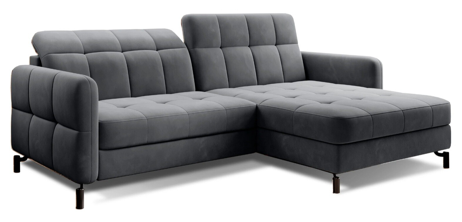 Lorelle is a stylish, elegant and modern corner sofa for our times, which is not only a functional piece of furniture, but can also work perfectly as an apartment decoration. L-shaped Lorelle - with dimensions of 225 x 160 x 105 cm - guarantees spaciousness and comfort during the day, as well as maximum comfort on the sleeping surface of 200 x 110 cm - at night. Thanks to the automatic and intuitive dolphin-type mechanism, unfolding the bed to the sleeping function is pleasant and completely uncomplicated. The advantage of this model is also the capacious storage compartment - a place for bedding - which is located in the ottoman. Positive sensations are enhanced by the way the furniture is made through a B-type corrugated spring, as well as HR + T25 foam, thanks to which the body is stabilized and properly supported while resting. Such a combination provides users, a sense of maximum comfort. Among the distinguishing features of this model, we can certainly include careful, modern finishing, a wide choice of colors, as well as original, stylish black legs of irregular shape. If you are looking for a breath of freshness and an interesting, elegant finish - Lorello will certainly be perfect for you. It is worth applying such a solution in your apartment.