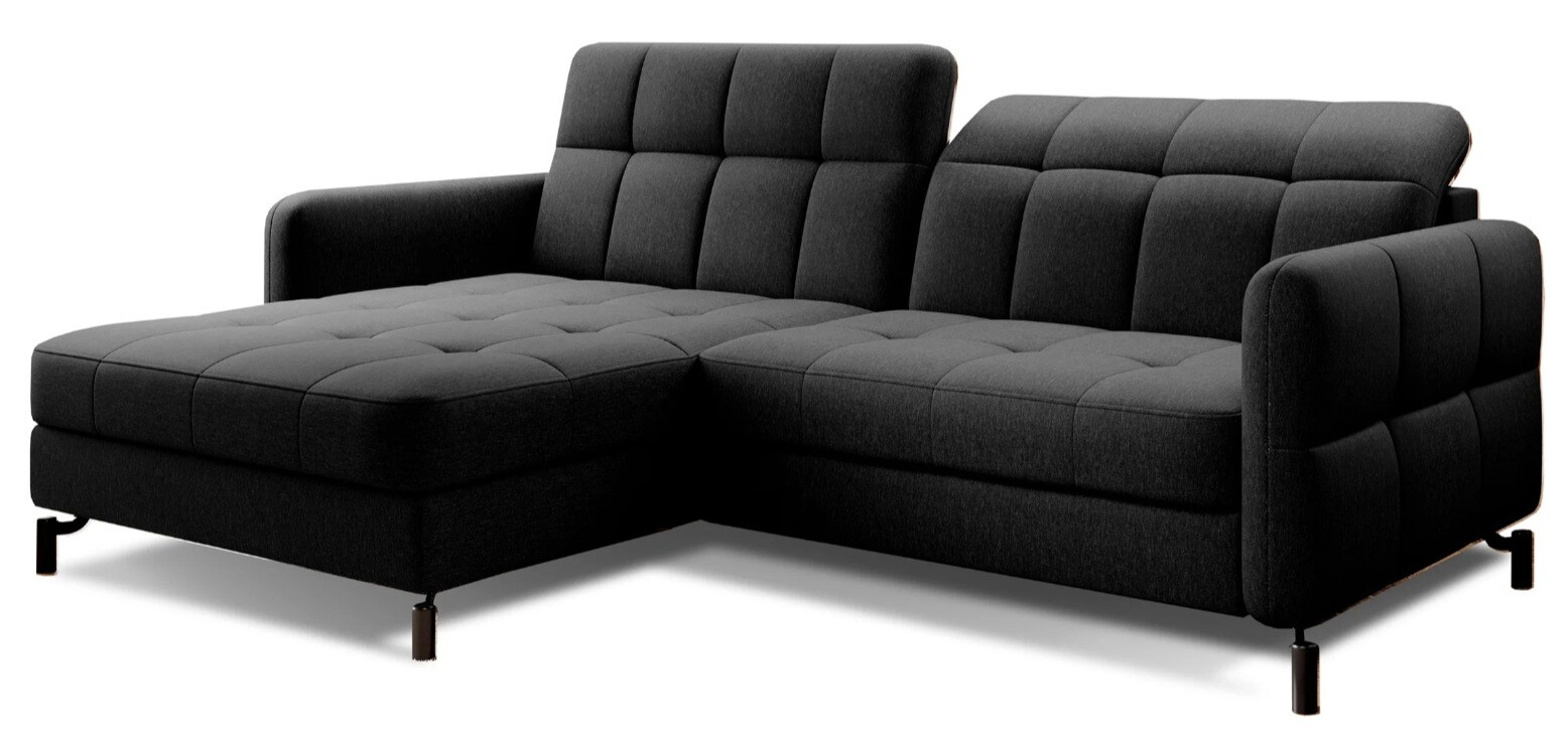Lorelle is a stylish, elegant and modern corner sofa for our times, which is not only a functional piece of furniture, but can also work perfectly as an apartment decoration. L-shaped Lorelle - with dimensions of 225 x 160 x 105 cm - guarantees spaciousness and comfort during the day, as well as maximum comfort on the sleeping surface of 200 x 110 cm - at night. Thanks to the automatic and intuitive dolphin-type mechanism, unfolding the bed to the sleeping function is pleasant and completely uncomplicated. The advantage of this model is also the capacious storage compartment - a place for bedding - which is located in the ottoman. Positive sensations are enhanced by the way the furniture is made through a B-type corrugated spring, as well as HR + T25 foam, thanks to which the body is stabilized and properly supported while resting. Such a combination provides users, a sense of maximum comfort. Among the distinguishing features of this model, we can certainly include careful, modern finishing, a wide choice of colors, as well as original, stylish black legs of irregular shape. If you are looking for a breath of freshness and an interesting, elegant finish - Lorello will certainly be perfect for you. It is worth applying such a solution in your apartment.