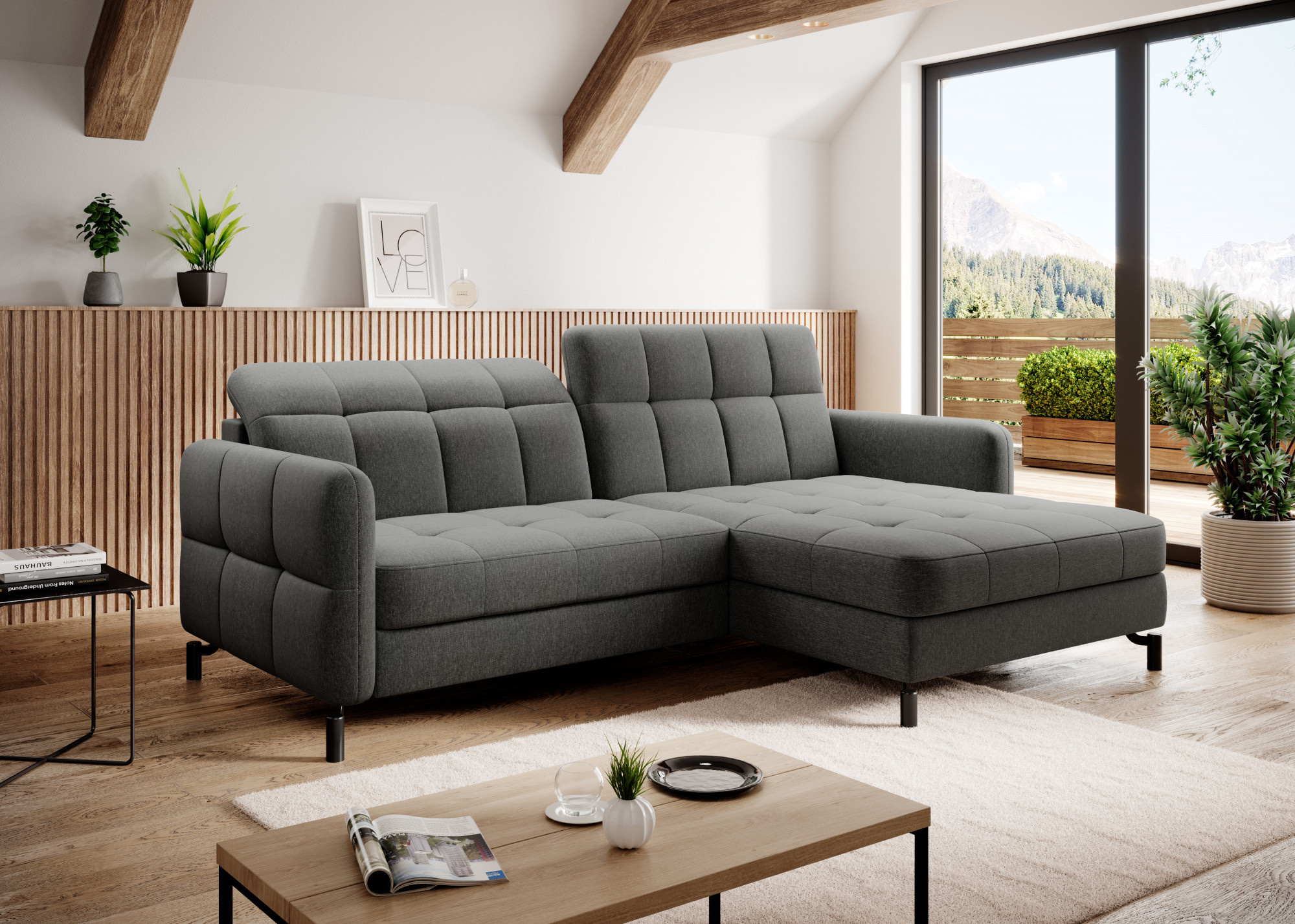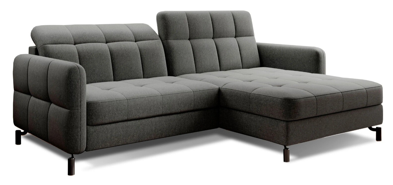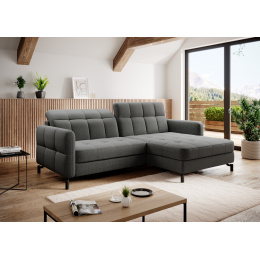 Lorelle is a stylish, elegant and modern corner sofa for our times, which is not only a functional piece of furniture, but can also work perfectly as an apartment decoration. L-shaped Lorelle - with dimensions of 225 x 160 x 105 cm - guarantees spaciousness and comfort during the day, as well as maximum comfort on the sleeping surface of 200 x 110 cm - at night. Thanks to the automatic and intuitive dolphin-type mechanism, unfolding the bed to the sleeping function is pleasant and completely uncomplicated. The advantage of this model is also the capacious storage compartment - a place for bedding - which is located in the ottoman. Positive sensations are enhanced by the way the furniture is made through a B-type corrugated spring, as well as HR + T25 foam, thanks to which the body is stabilized and properly supported while resting. Such a combination provides users, a sense of maximum comfort. Among the distinguishing features of this model, we can certainly include careful, modern finishing, a wide choice of colors, as well as original, stylish black legs of irregular shape. If you are looking for a breath of freshness and an interesting, elegant finish - Lorello will certainly be perfect for you. It is worth applying such a solution in your apartment.
