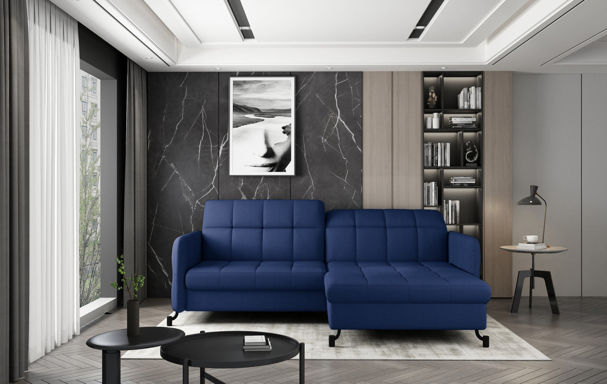 Lorelle is a stylish, elegant and modern corner sofa for our times, which is not only a functional piece of furniture, but can also work perfectly as an apartment decoration. L-shaped Lorelle - with dimensions of 225 x 160 x 105 cm - guarantees spaciousness and comfort during the day, as well as maximum comfort on the sleeping surface of 200 x 110 cm - at night. Thanks to the automatic and intuitive dolphin-type mechanism, unfolding the bed to the sleeping function is pleasant and completely uncomplicated. The advantage of this model is also the capacious storage compartment - a place for bedding - which is located in the ottoman. Positive sensations are enhanced by the way the furniture is made through a B-type corrugated spring, as well as HR + T25 foam, thanks to which the body is stabilized and properly supported while resting. Such a combination provides users, a sense of maximum comfort. Among the distinguishing features of this model, we can certainly include careful, modern finishing, a wide choice of colors, as well as original, stylish black legs of irregular shape. If you are looking for a breath of freshness and an interesting, elegant finish - Lorello will certainly be perfect for you. It is worth applying such a solution in your apartment.