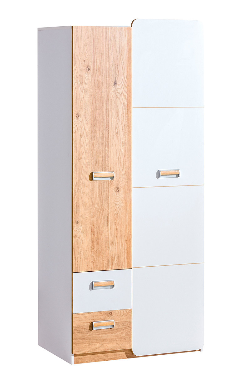 LORENTO L1 ruhásszekrény, Briliáns Fehér/Tölgy Nash