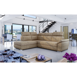 Loreto is a stylish and modern corner sofa for our times. The furniture with dimensions of 260x210x102 guarantees spaciousness and comfort during the day, as well as maximum comfort on the surface of 125 x 190 cm - at night. Thanks to the dolphin-type mechanism, unfolding the bed is pleasant and uncomplicated. In addition, it is also worth mentioning the spacious bedding container. Exceptional softness and springiness of the seat is guaranteed by combining T30 foam with a corrugated spring. Such a combination affects the lack of deformation, unsightly indentations and damage. Among the distinctive features that we can attribute to this model are: adjustable, contoured headrests, a wide range of colors of the model, upholstered back of the corner and oval chrome legs. If you are looking for something unique in the modern classic style - Loreto will certainly be perfect for you.