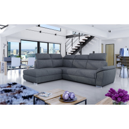 Loreto is a stylish and modern corner sofa for our times. The furniture with dimensions of 260x210x102 guarantees spaciousness and comfort during the day, as well as maximum comfort on the surface of 125 x 190 cm - at night. Thanks to the dolphin-type mechanism, unfolding the bed is pleasant and uncomplicated. In addition, it is also worth mentioning the spacious bedding container. Exceptional softness and springiness of the seat is guaranteed by combining T30 foam with a corrugated spring. Such a combination affects the lack of deformation, unsightly indentations and damage. Among the distinctive features that we can attribute to this model are: adjustable, contoured headrests, a wide range of colors of the model, upholstered back of the corner and oval chrome legs. If you are looking for something unique in the modern classic style - Loreto will certainly be perfect for you.