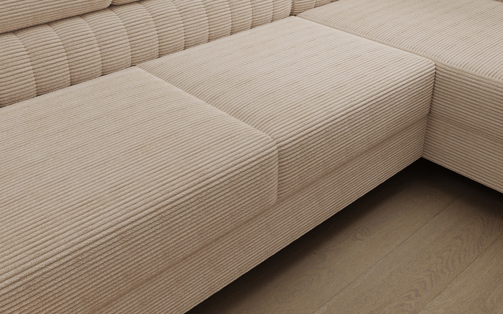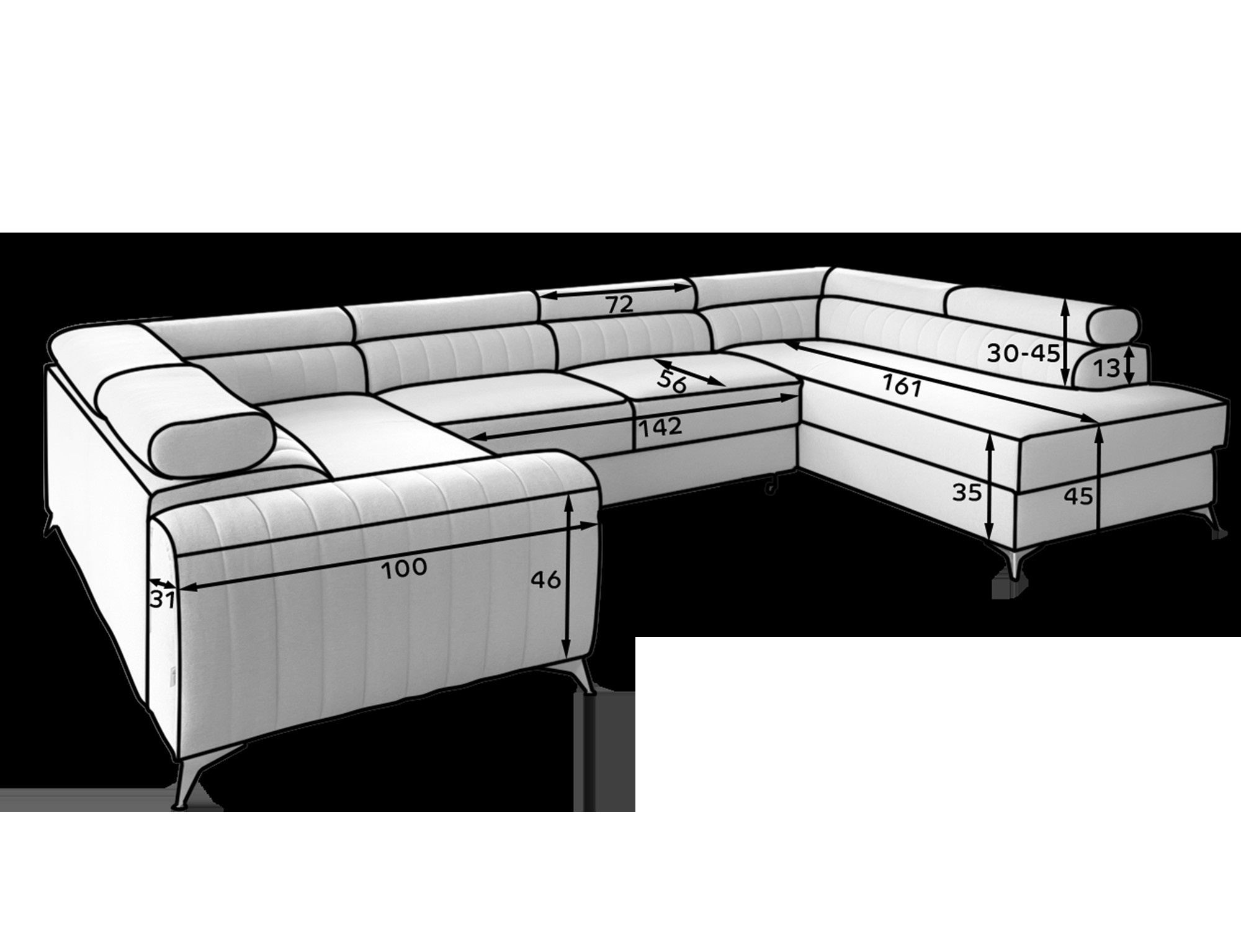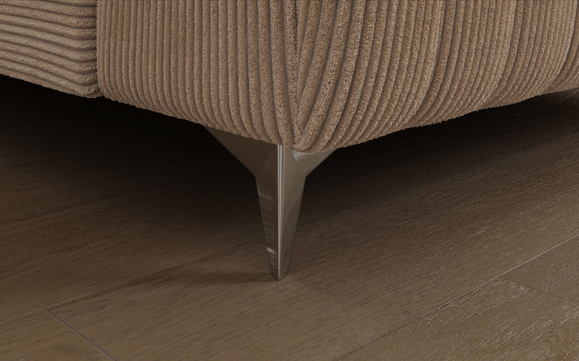 The Louis corner sofa is comfortable, stylish, and above all, functional. The seat consists of wave springs and a filling made of T30 and high-resilience HR foam, which perfectly adapts to the body and enhances comfort. The dimensions of the Louis corner sofa — 347 x 202 x 92 cm — further increase the level of comfort. Among its advantages are four adjustable headrests, a bedding container, and a large sleeping area measuring 254 x 123 cm. In addition, the “dolphin” unfolding mechanism used in this piece is simple and intuitive. You can also choose the upholstery color of the Louis corner sofa from the Eltap fabric collection palette. The designer legs of the sofa are also worth noting — made of steel, chrome-plated, and high, they add an elegant touch to the furniture. The aesthetic qualities are further emphasized by the vertical stitching on the side and back of the Louis sofa.