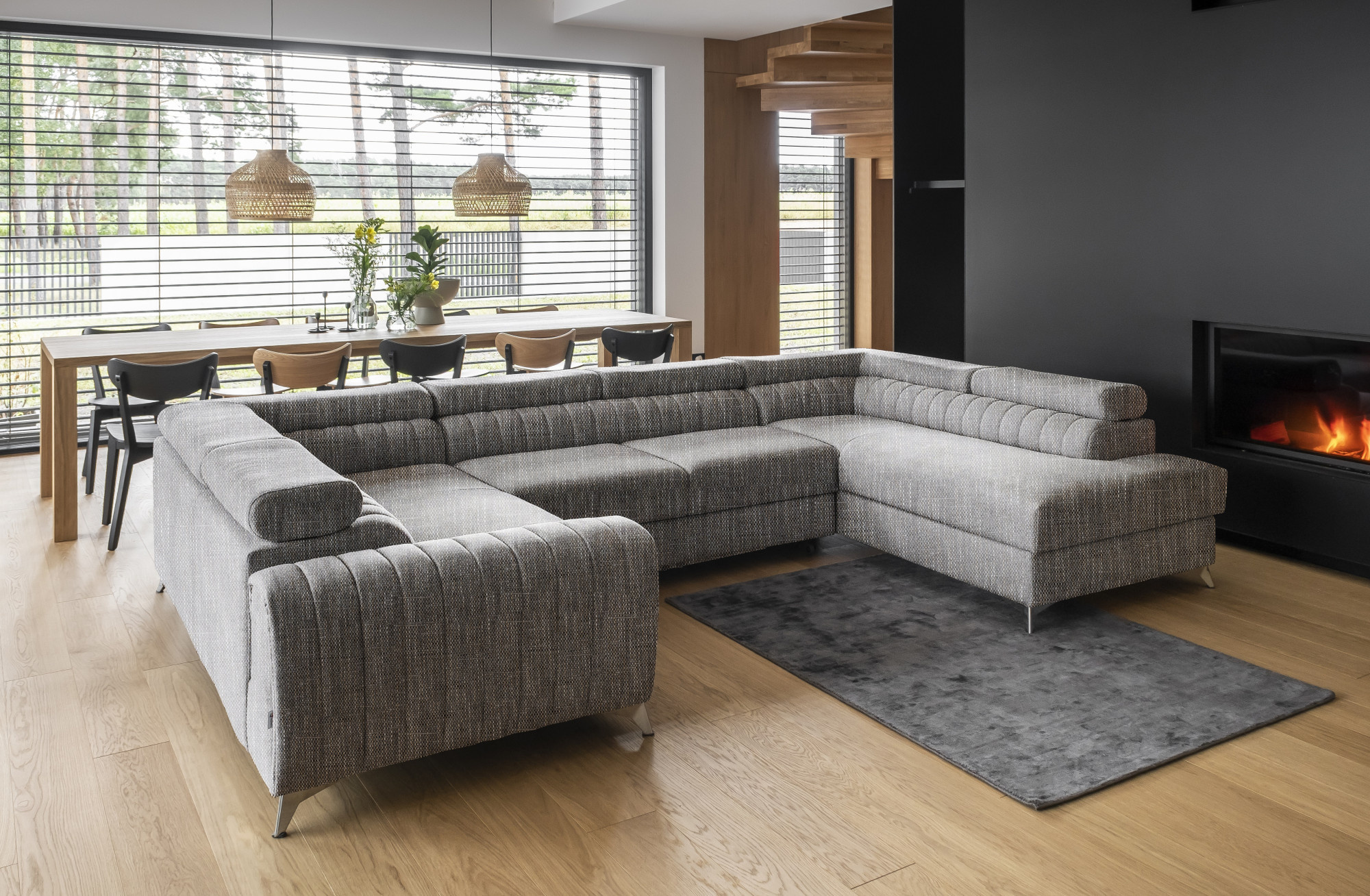 Louis corner sofa is comfortable, stylish and, above all, functional. The seat consists of a corrugated spring and foam filling: T30 and high-flexible HR foam, which perfectly adapt to the body and increase the feeling of comfort. The dimensions of the Louis corner sofa: 347 x 202 x 92 cm intensify the level of comfort. The corner's strengths also include four adjustable headrests, a bedding container and a large sleeping surface of 210 x 125 cm. In addition, the dolphin-type unfolding mechanism, with which the furniture is equipped, is a simple and intuitive system. It is also possible to choose the color of the upholstery of the Louis corner sofa from the color palette of the Eltap collection. It is also worth noting the furniture's designer legs. Steel, chrome-plated, high legs are an interesting and elegant decoration of the corner piece. The aesthetic value is also emphasized by vertical stitching on the side and backrest of Louis.