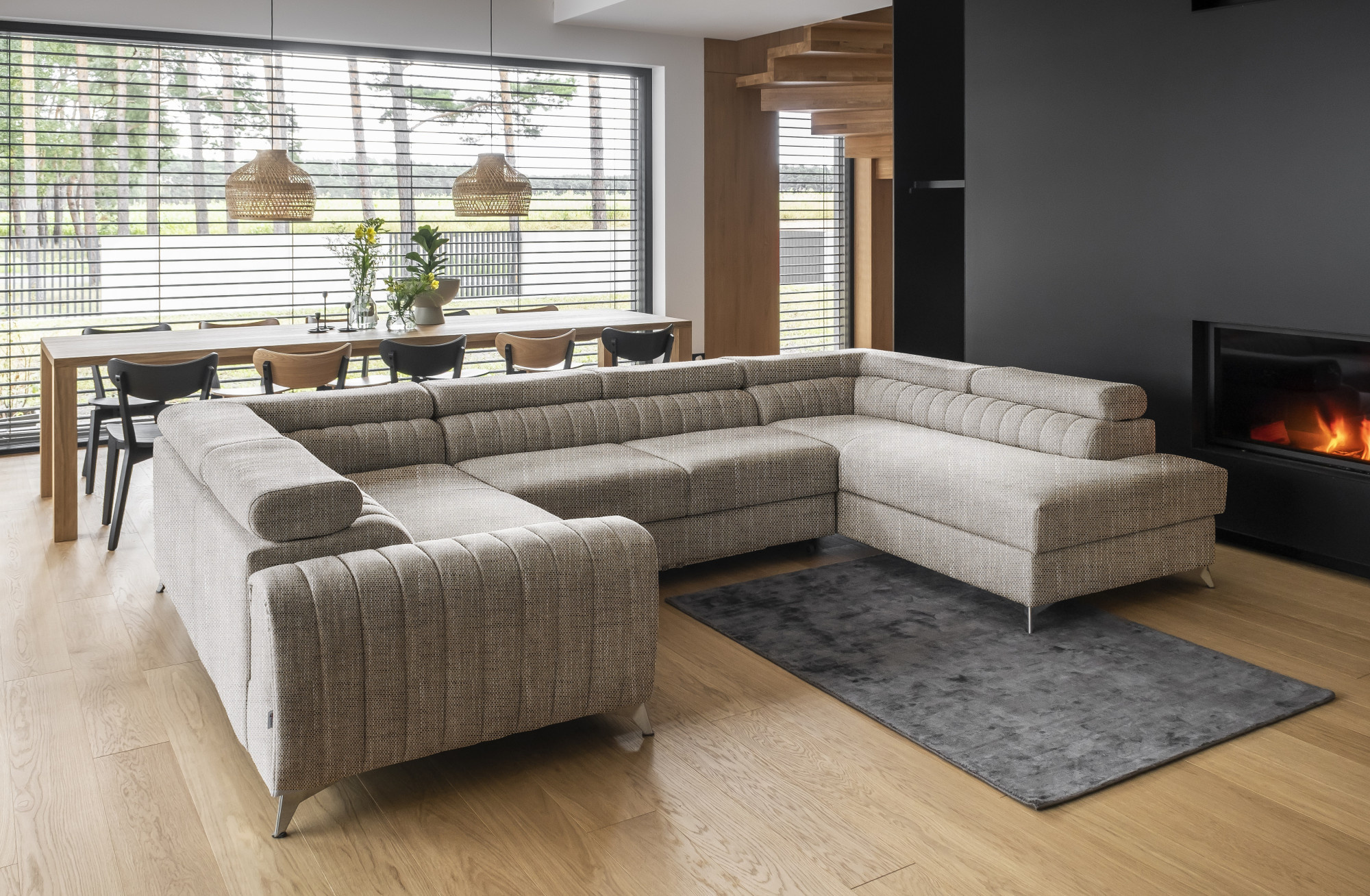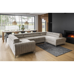 Louis corner sofa is comfortable, stylish and, above all, functional. The seat consists of a corrugated spring and foam filling: T30 and high-flexible HR foam, which perfectly adapt to the body and increase the feeling of comfort. The dimensions of the Louis corner sofa: 347 x 202 x 92 cm intensify the level of comfort. The corner's strengths also include four adjustable headrests, a bedding container and a large sleeping surface of 210 x 125 cm. In addition, the dolphin-type unfolding mechanism, with which the furniture is equipped, is a simple and intuitive system. It is also possible to choose the color of the upholstery of the Louis corner sofa from the color palette of the Eltap collection. It is also worth noting the furniture's designer legs. Steel, chrome-plated, high legs are an interesting and elegant decoration of the corner piece. The aesthetic value is also emphasized by vertical stitching on the side and backrest of Louis.