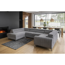 Louis corner sofa is comfortable, stylish and, above all, functional. The seat consists of a corrugated spring and foam filling: T30 and high-flexible HR foam, which perfectly adapt to the body and increase the feeling of comfort. The dimensions of the Louis corner sofa: 347 x 202 x 92 cm intensify the level of comfort. The corner's strengths also include four adjustable headrests, a bedding container and a large sleeping surface of 210 x 125 cm. In addition, the dolphin-type unfolding mechanism, with which the furniture is equipped, is a simple and intuitive system. It is also possible to choose the color of the upholstery of the Louis corner sofa from the color palette of the Eltap collection. It is also worth noting the furniture's designer legs. Steel, chrome-plated, high legs are an interesting and elegant decoration of the corner piece. The aesthetic value is also emphasized by vertical stitching on the side and backrest of Louis.