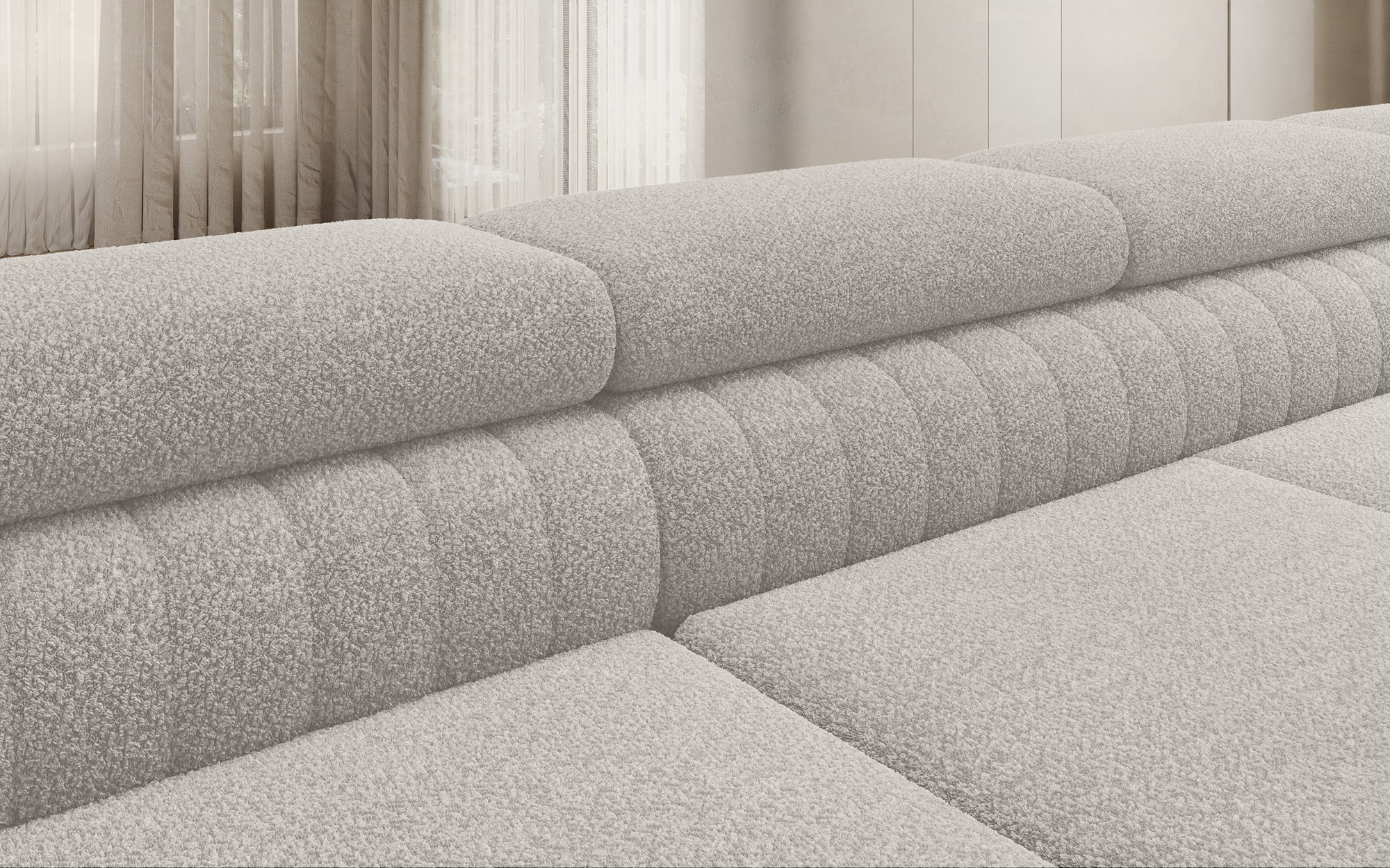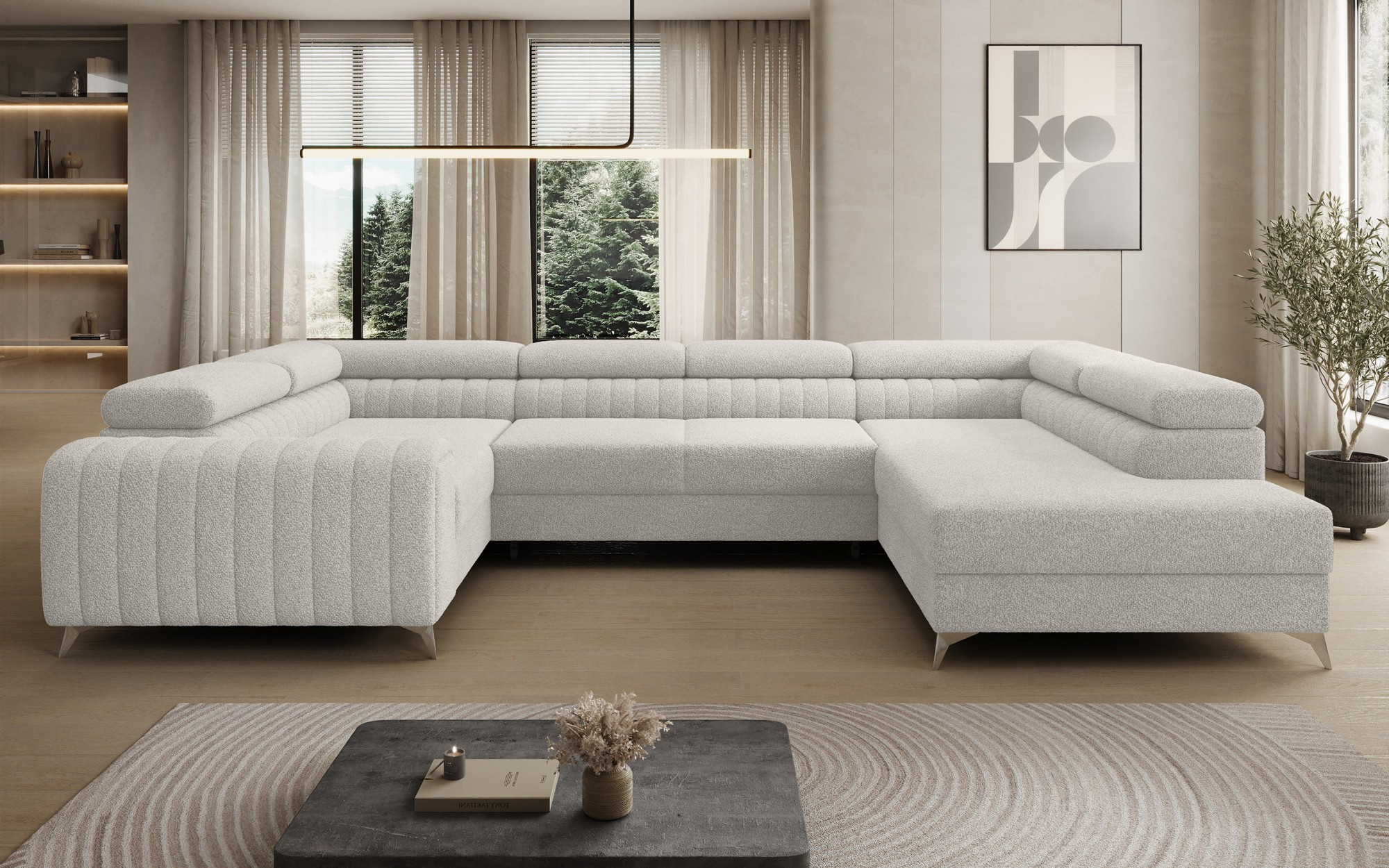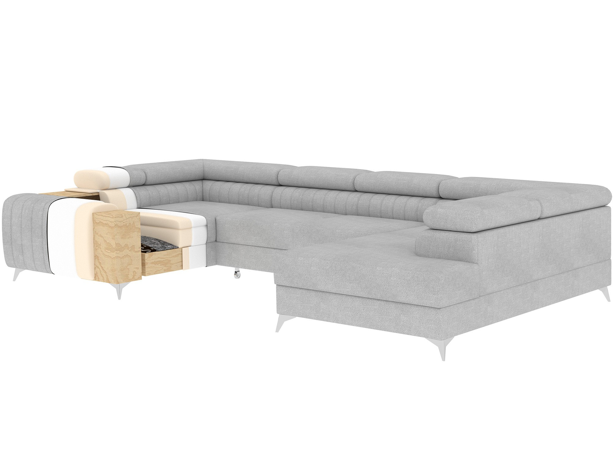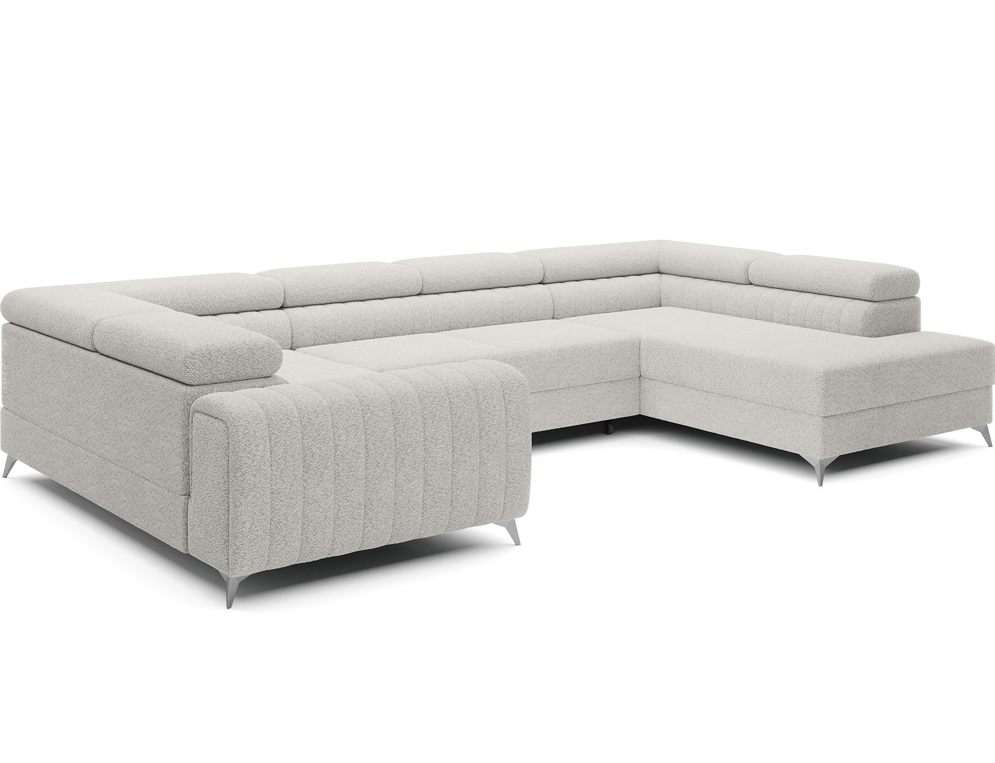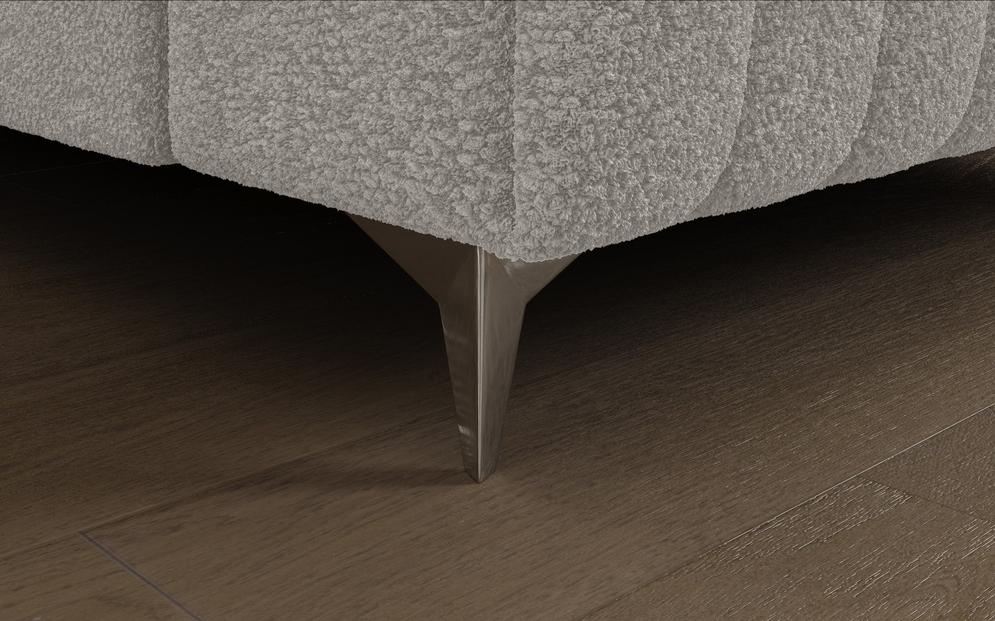 The Louis corner sofa is comfortable, stylish, and above all, functional. The seat consists of wave springs and a filling made of T30 and high-resilience HR foam, which perfectly adapts to the body and enhances comfort. The dimensions of the Louis corner sofa — 347 x 202 x 92 cm — further increase the level of comfort. Among its advantages are four adjustable headrests, a bedding container, and a large sleeping area measuring 254 x 123 cm. In addition, the “dolphin” unfolding mechanism used in this piece is simple and intuitive. You can also choose the upholstery color of the Louis corner sofa from the Eltap fabric collection palette. The designer legs of the sofa are also worth noting — made of steel, chrome-plated, and high, they add an elegant touch to the furniture. The aesthetic qualities are further emphasized by the vertical stitching on the side and back of the Louis sofa.
