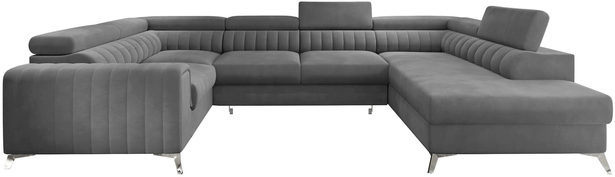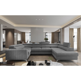 Louis corner sofa is comfortable, stylish and, above all, functional. The seat consists of a corrugated spring and foam filling: T30 and high-flexible HR foam, which perfectly adapt to the body and increase the feeling of comfort. The dimensions of the Louis corner sofa: 347 x 202 x 92 cm intensify the level of comfort. The corner's strengths also include four adjustable headrests, a bedding container and a large sleeping surface of 210 x 125 cm. In addition, the dolphin-type unfolding mechanism, with which the furniture is equipped, is a simple and intuitive system. It is also possible to choose the color of the upholstery of the Louis corner sofa from the color palette of the Eltap collection. It is also worth noting the furniture's designer legs. Steel, chrome-plated, high legs are an interesting and elegant decoration of the corner piece. The aesthetic value is also emphasized by vertical stitching on the side and backrest of Louis.