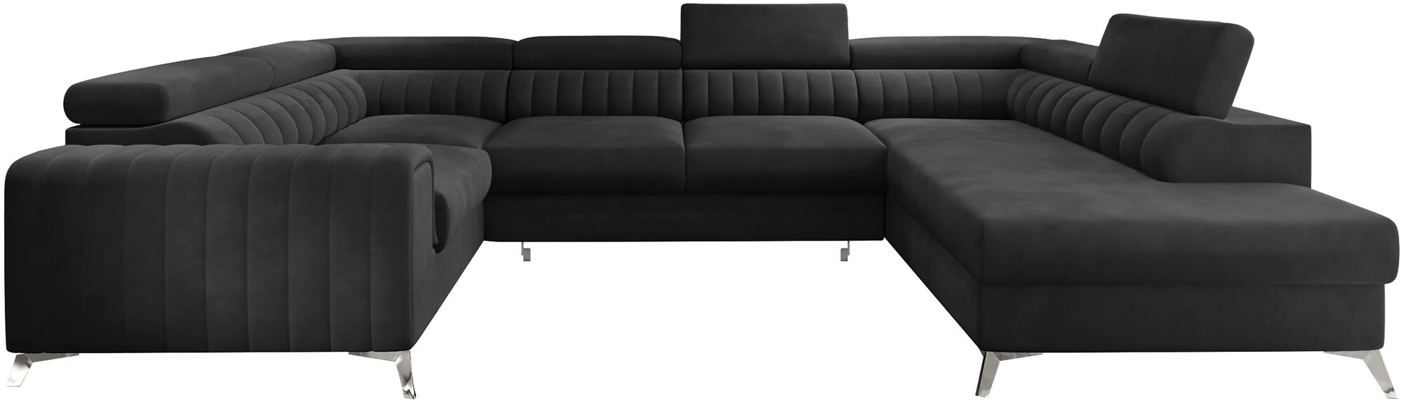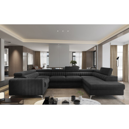 Louis corner sofa is comfortable, stylish and, above all, functional. The seat consists of a corrugated spring and foam filling: T30 and high-flexible HR foam, which perfectly adapt to the body and increase the feeling of comfort. The dimensions of the Louis corner sofa: 347 x 202 x 92 cm intensify the level of comfort. The corner's strengths also include four adjustable headrests, a bedding container and a large sleeping surface of 210 x 125 cm. In addition, the dolphin-type unfolding mechanism, with which the furniture is equipped, is a simple and intuitive system. It is also possible to choose the color of the upholstery of the Louis corner sofa from the color palette of the Eltap collection. It is also worth noting the furniture's designer legs. Steel, chrome-plated, high legs are an interesting and elegant decoration of the corner piece. The aesthetic value is also emphasized by vertical stitching on the side and backrest of Louis.