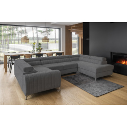 Louis corner sofa is comfortable, stylish and, above all, functional. The seat consists of a corrugated spring and foam filling: T30 and high-flexible HR foam, which perfectly adapt to the body and increase the feeling of comfort. The dimensions of the Louis corner sofa: 347 x 202 x 92 cm intensify the level of comfort. The corner's strengths also include four adjustable headrests, a bedding container and a large sleeping surface of 210 x 125 cm. In addition, the dolphin-type unfolding mechanism, with which the furniture is equipped, is a simple and intuitive system. It is also possible to choose the color of the upholstery of the Louis corner sofa from the color palette of the Eltap collection. It is also worth noting the furniture's designer legs. Steel, chrome-plated, high legs are an interesting and elegant decoration of the corner piece. The aesthetic value is also emphasized by vertical stitching on the side and backrest of Louis.