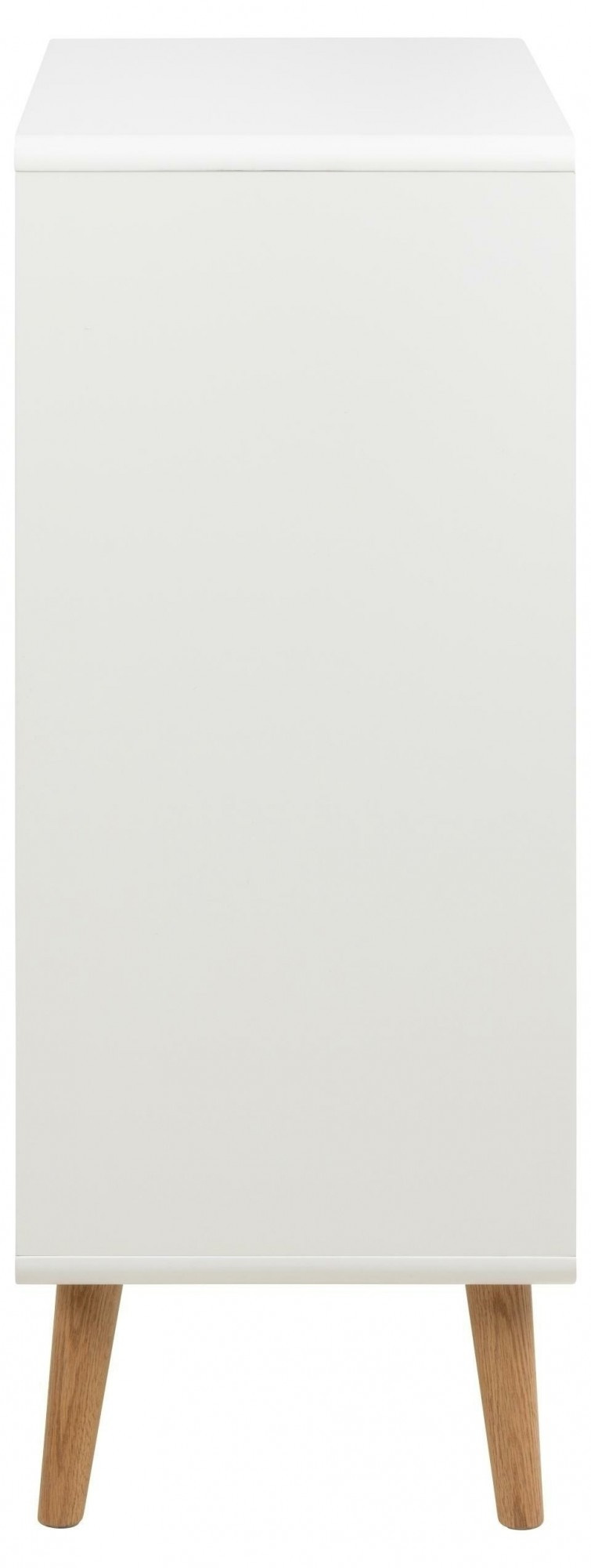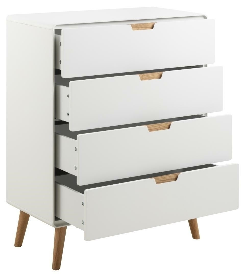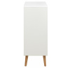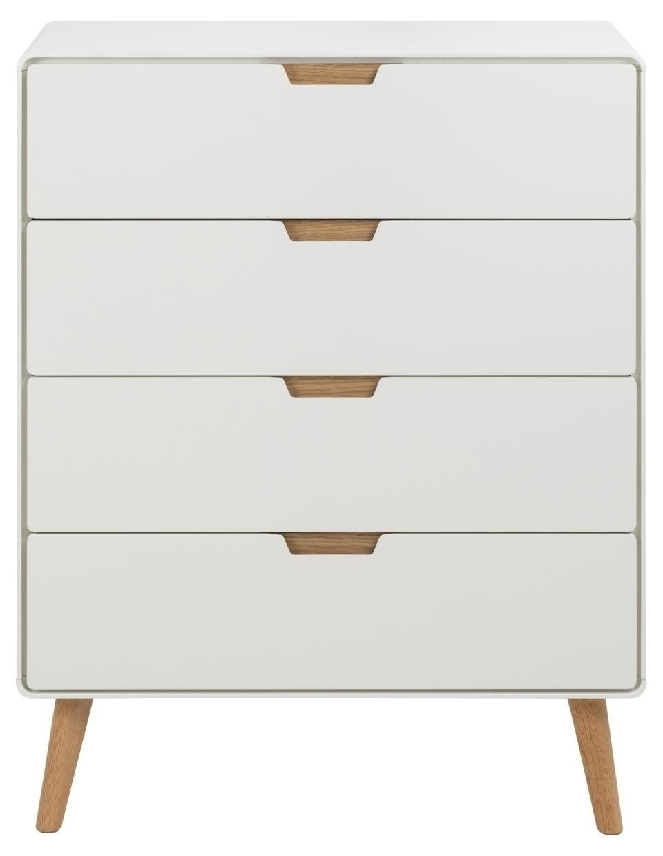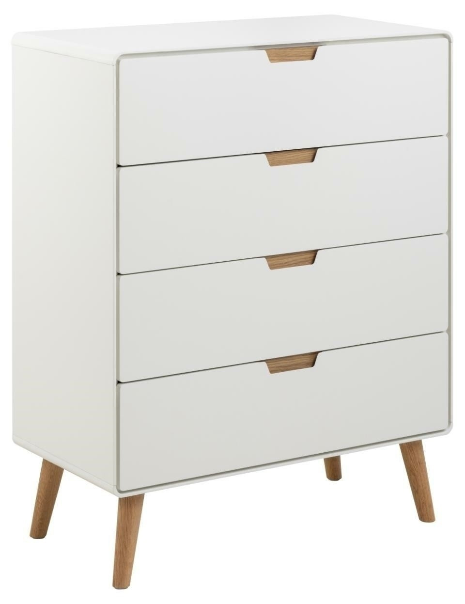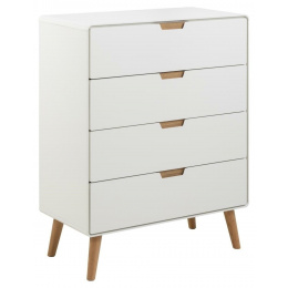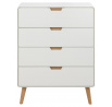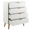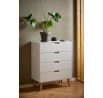 A tágas Lowell komód 4 fiókkal elegendő helyet biztosít ruhák, játékok és könyvek tárolására. A fehérre festett aljzat minimalista megjelenésének köszönhetően szinte bármelyik szobához illeszkedik. A tölgy részletek jól kiegészítik az összesített esztétikát. Ez egy tárolási megoldás, amely erőfeszítés nélkül ötvözi a funkcionalitást és a dizájnt. 4 fiókkal felszerelve, csendes záródással. Fehérre festett fiókok tölgyfogantyúkkal.Kúpos tölgy lábak. FSC tanúsítvány. Összeszerelést igényel A komód súlya: 45 kg. A korpus és a fiókok anyaga: MDF, Lábak anyaga: tölgyfa Lábak magassága: 17 cm Karton méretei: 96x48x23 cm