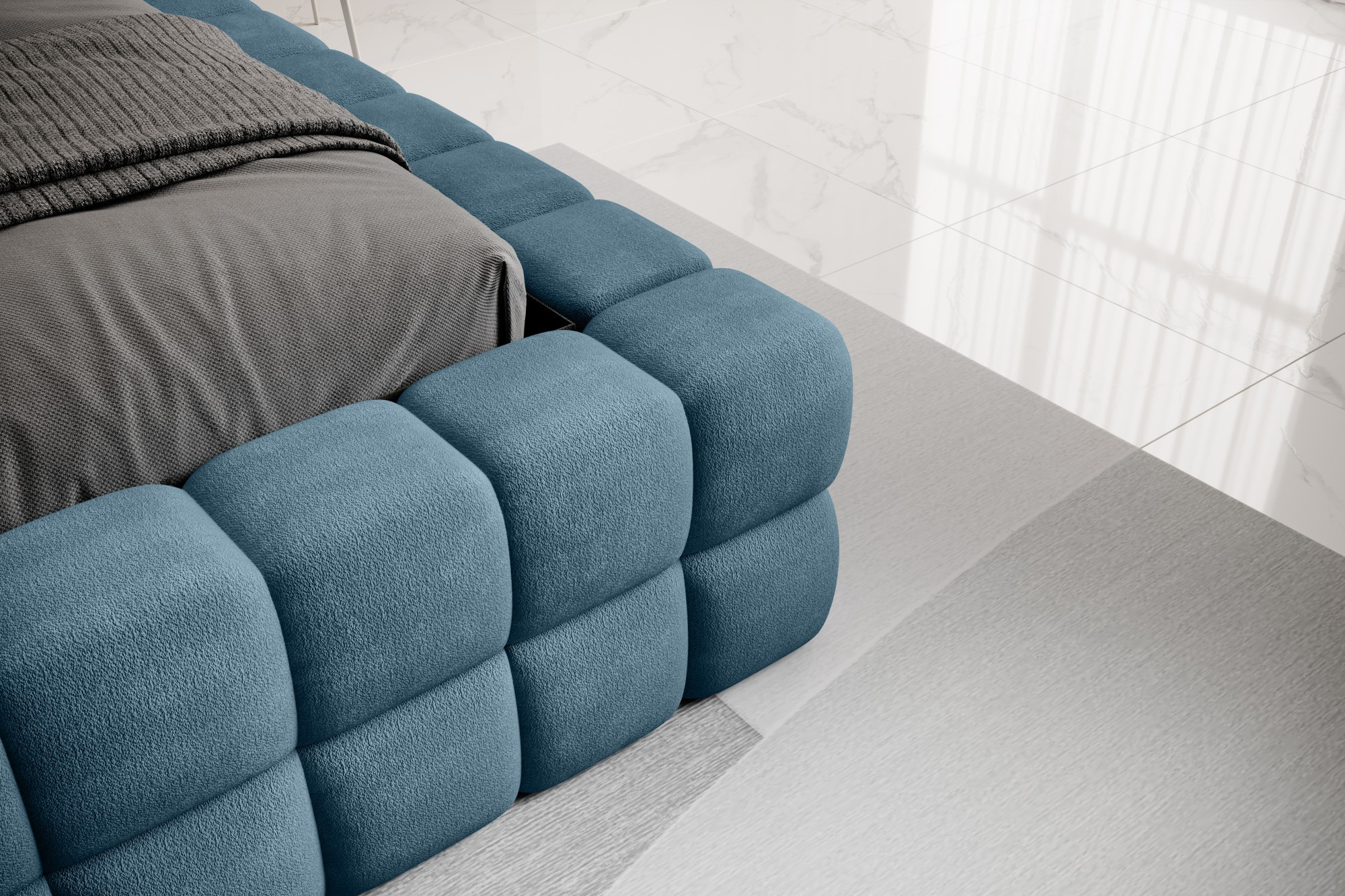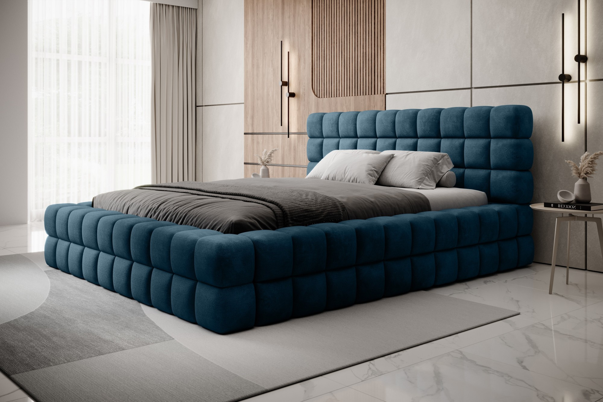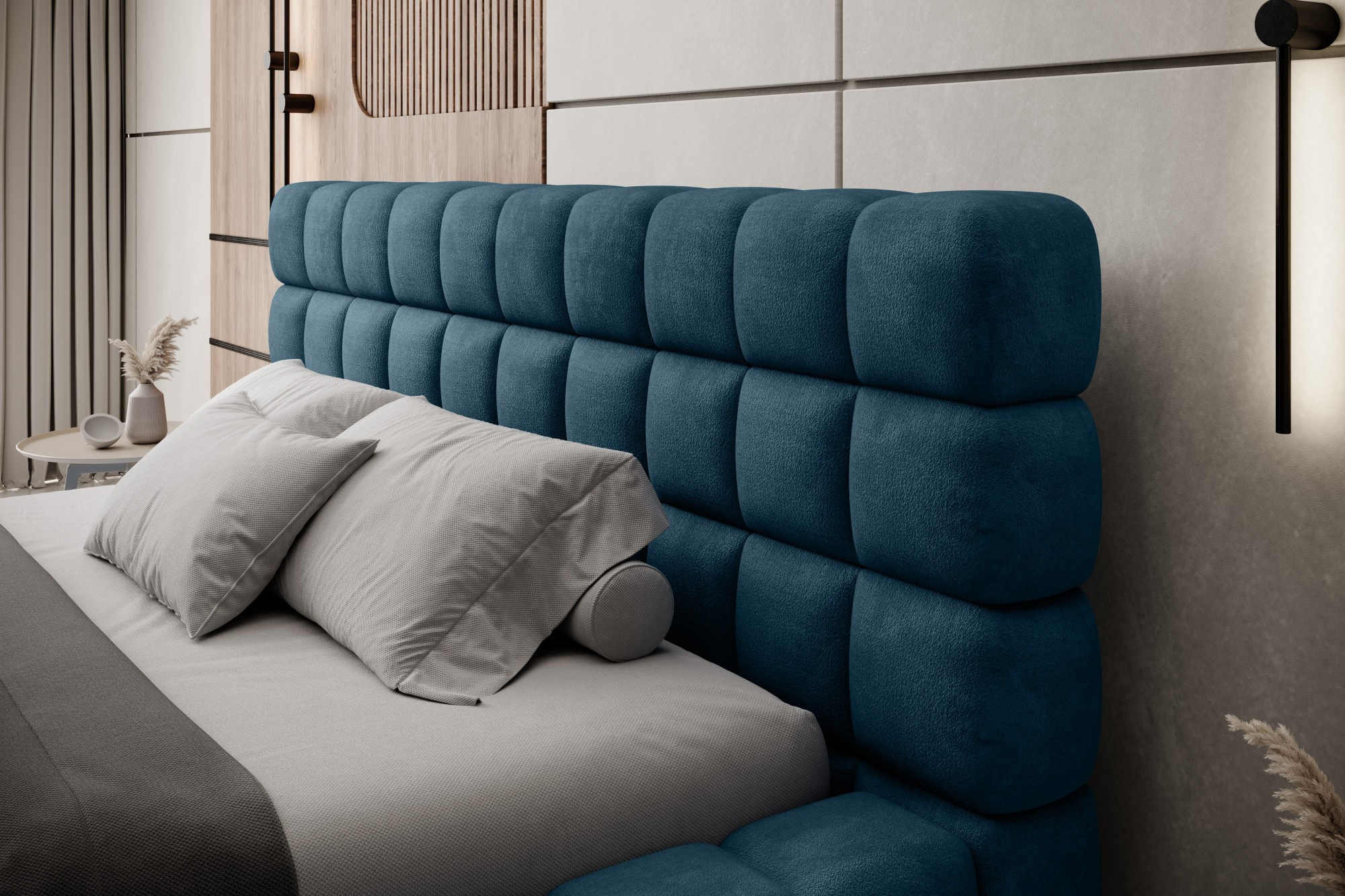 The Dizzle Bed in the version with a width of 160 cm is the perfect solution for those seeking more sleeping space without compromising on elegance and comfort. It uses T2130 foam, ensuring elasticity and a unique comfort during sleep. With three different width options, 160 cm is the ideal solution for spacious sleep. The length of the bed is 225 cm, and its impressive height of 104 cm adds elegance to the entire construction.The seat height is 42 cm; however, it is recommended to add the mattress height to achieve full sleep comfort. Black plastic legs with a height of 2 cm ensure stability and easy movement of the furniture. The metal frame guarantees the durability of the construction, and one storage compartment makes the Dizzle Bed a practical place for storing additional items.With 36 slats for even mattress support, the Dizzle Bed, whose shape resembles an elegant cube, introduces spacious sleep, stylish design, and comfortable relaxation into your bedroom.