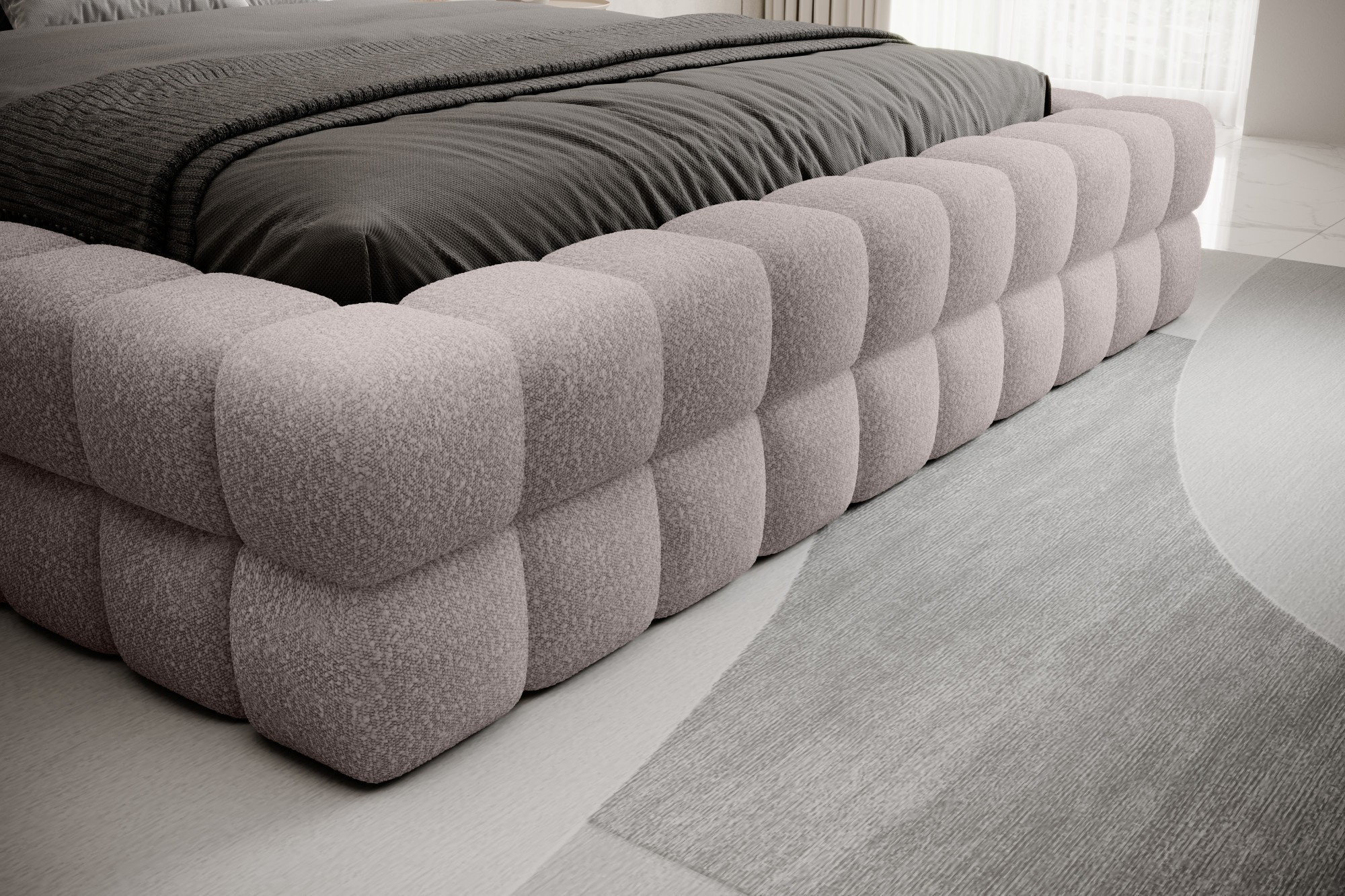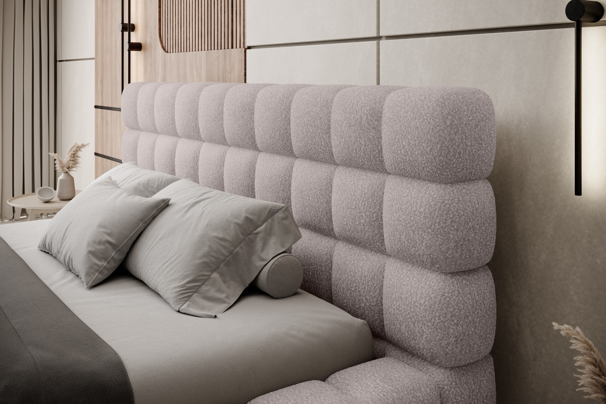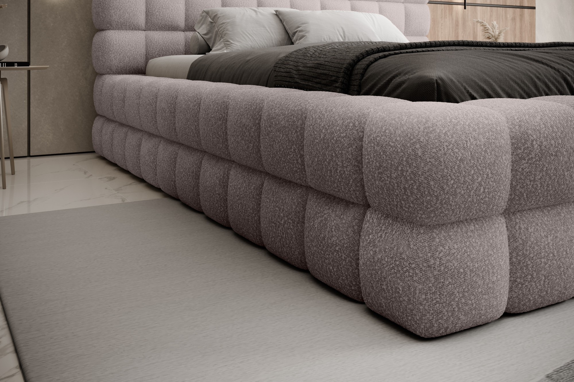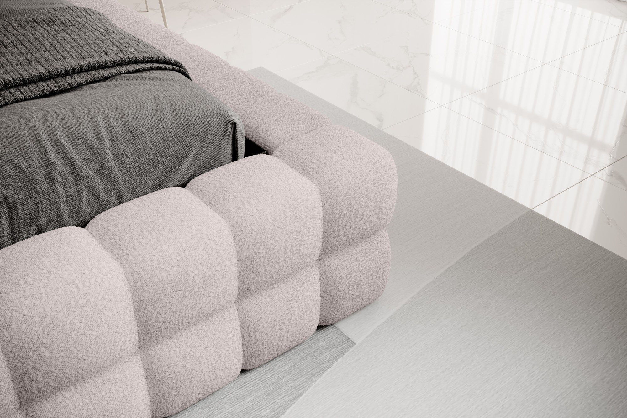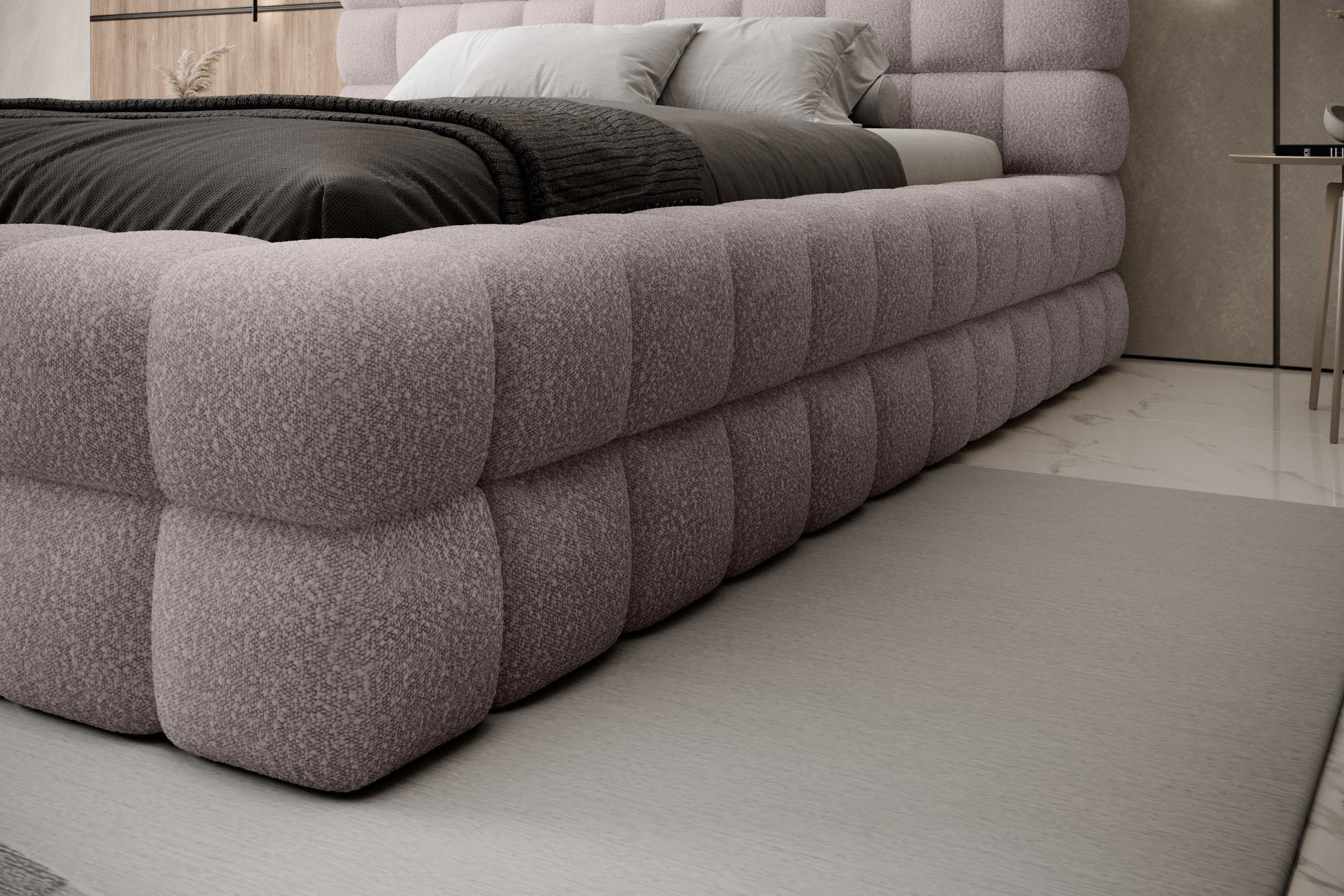 The Dizzle Bed in the version with a width of 160 cm is the perfect solution for those seeking more sleeping space without compromising on elegance and comfort. It uses T2130 foam, ensuring elasticity and a unique comfort during sleep. With three different width options, 160 cm is the ideal solution for spacious sleep. The length of the bed is 225 cm, and its impressive height of 104 cm adds elegance to the entire construction.The seat height is 42 cm; however, it is recommended to add the mattress height to achieve full sleep comfort. Black plastic legs with a height of 2 cm ensure stability and easy movement of the furniture. The metal frame guarantees the durability of the construction, and one storage compartment makes the Dizzle Bed a practical place for storing additional items.With 36 slats for even mattress support, the Dizzle Bed, whose shape resembles an elegant cube, introduces spacious sleep, stylish design, and comfortable relaxation into your bedroom.