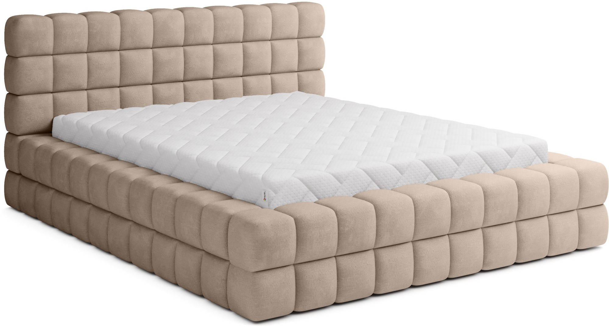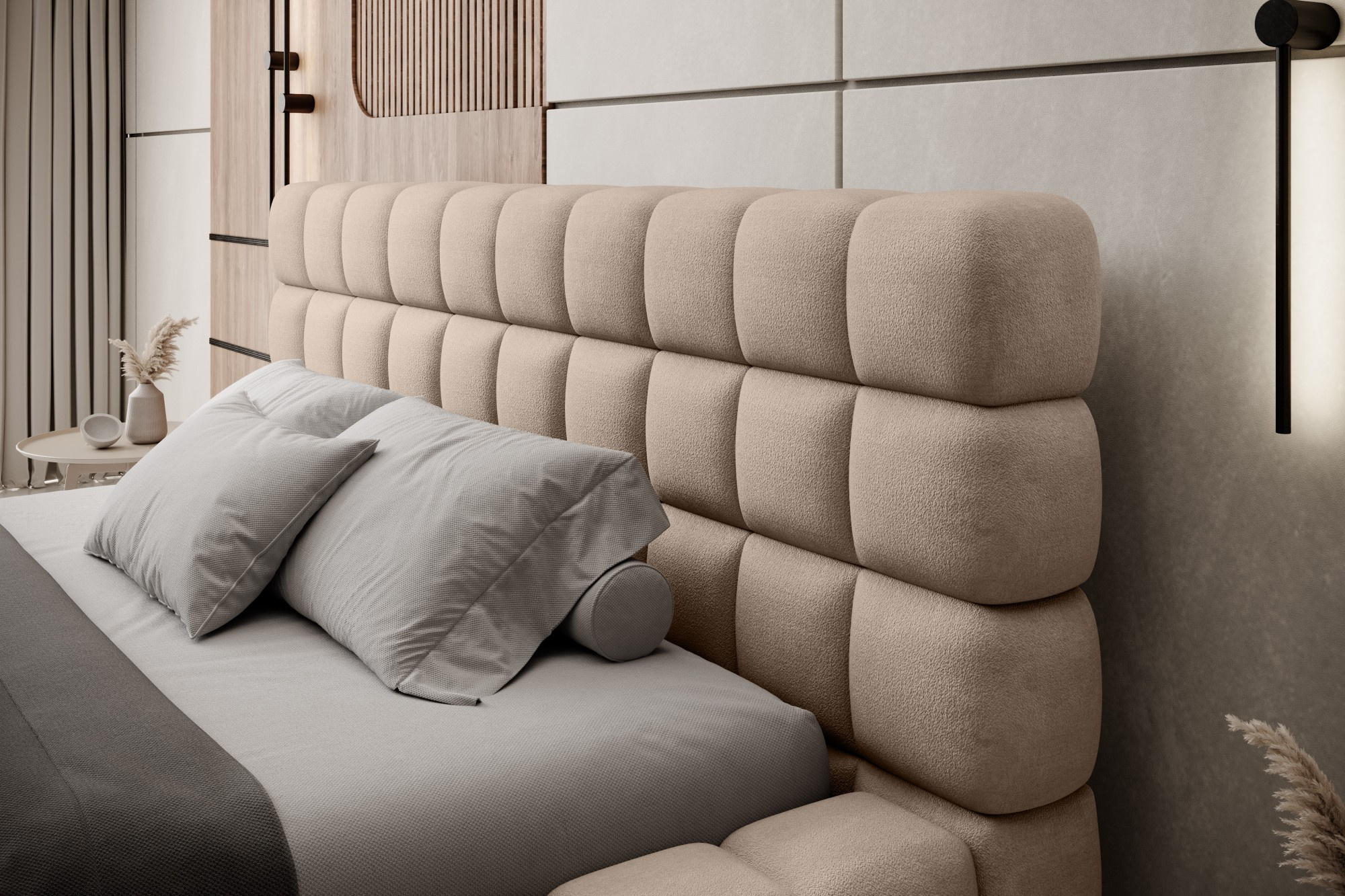 The Dizzle Bed in the version with an impressive width of 180 cm is the perfect solution for those who desire even more space for sleep, without sacrificing elegance and comfort. It utilizes T2130 foam, providing elasticity and a unique sleep comfort. With three different width options, 180 cm is a proposal for enthusiasts of spaciousness. The length of the bed is 225 cm, and its impressive height of 104 cm adds elegance to the entire construction.The seat height is 42 cm; however, it is recommended to add the mattress height for full usability comfort. Black plastic legs with a height of 2 cm ensure stability. The metal frame guarantees the durability of the construction, and one storage compartment makes the Dizzle Bed 180 a practical place for storing additional items.With 36 slats for even mattress support, the Dizzle Bed, whose shape resembles an elegant cube, introduces not only spaciousness but also stylish design and comfortable relaxation into your bedroom.