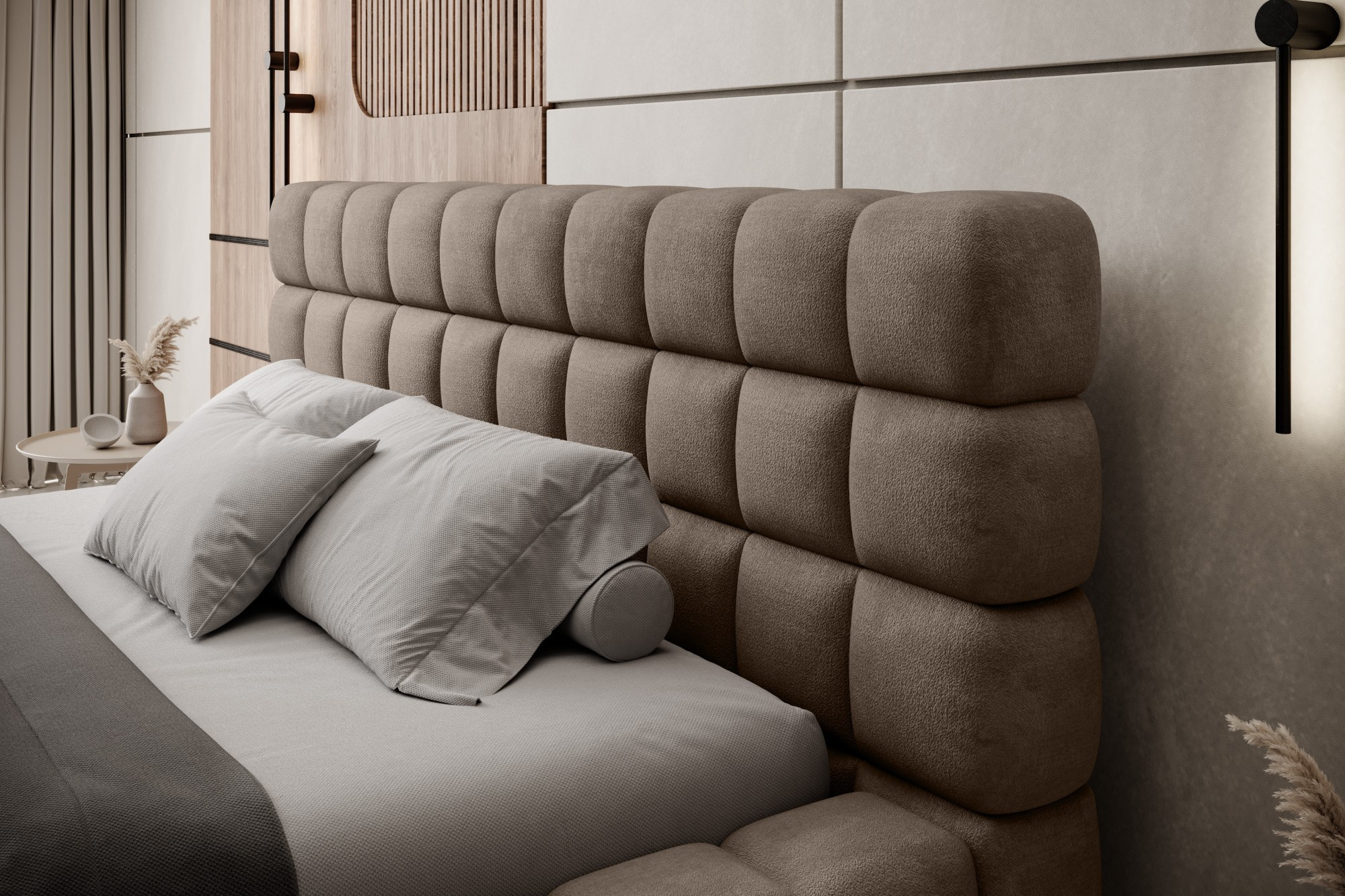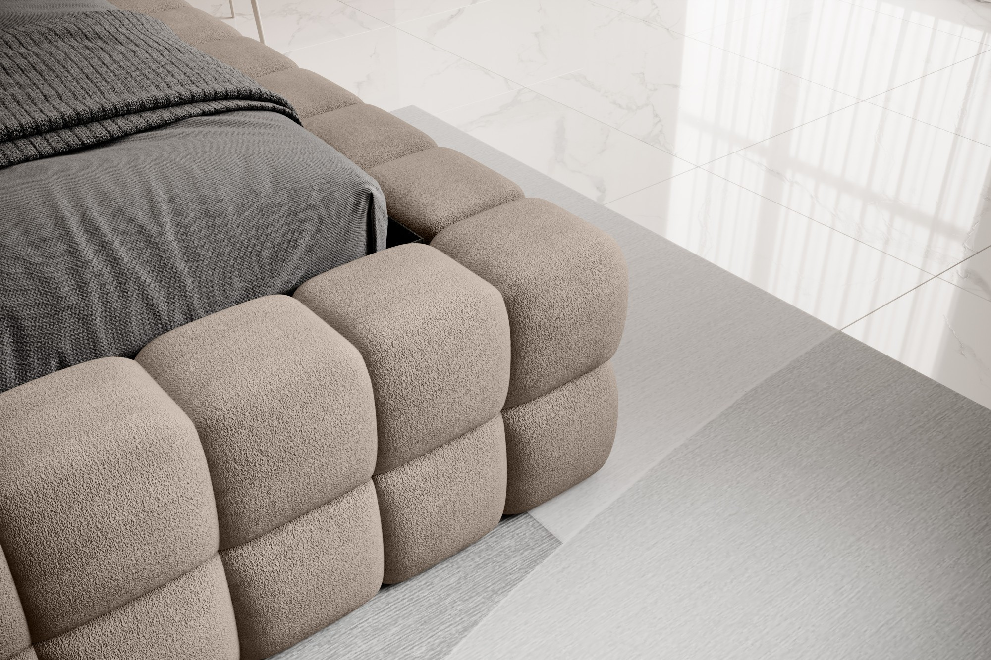 The Dizzle Bed in the version with an impressive width of 180 cm is the perfect solution for those who desire even more space for sleep, without sacrificing elegance and comfort. It utilizes T2130 foam, providing elasticity and a unique sleep comfort. With three different width options, 180 cm is a proposal for enthusiasts of spaciousness. The length of the bed is 225 cm, and its impressive height of 104 cm adds elegance to the entire construction.The seat height is 42 cm; however, it is recommended to add the mattress height for full usability comfort. Black plastic legs with a height of 2 cm ensure stability. The metal frame guarantees the durability of the construction, and one storage compartment makes the Dizzle Bed 180 a practical place for storing additional items.With 36 slats for even mattress support, the Dizzle Bed, whose shape resembles an elegant cube, introduces not only spaciousness but also stylish design and comfortable relaxation into your bedroom.