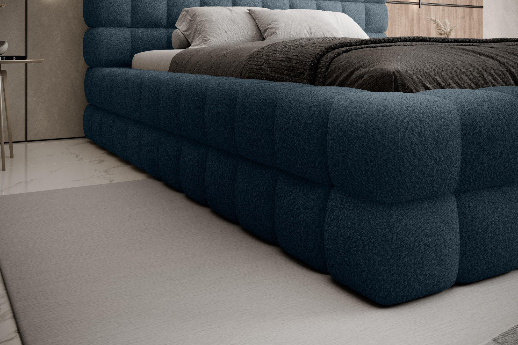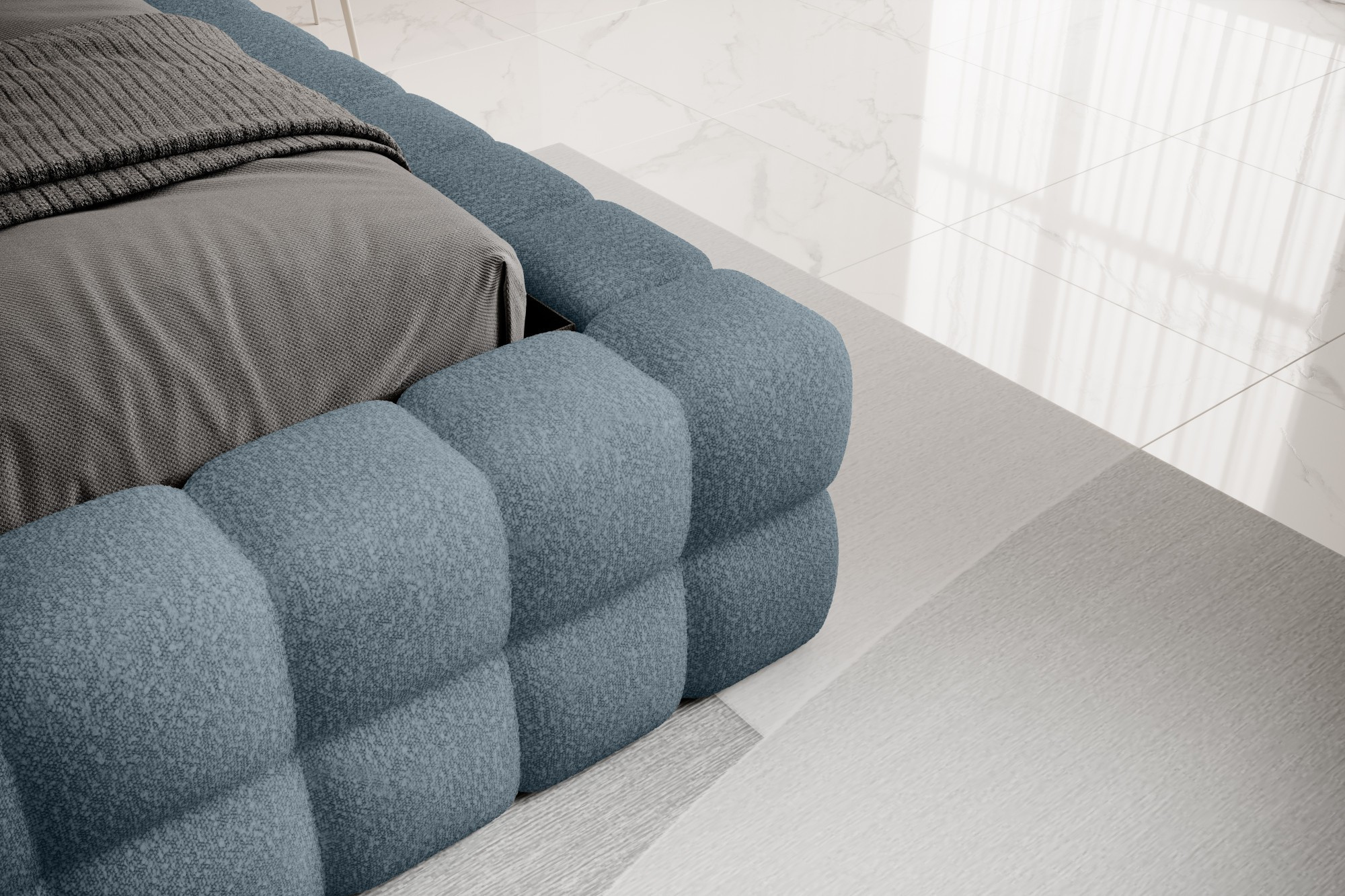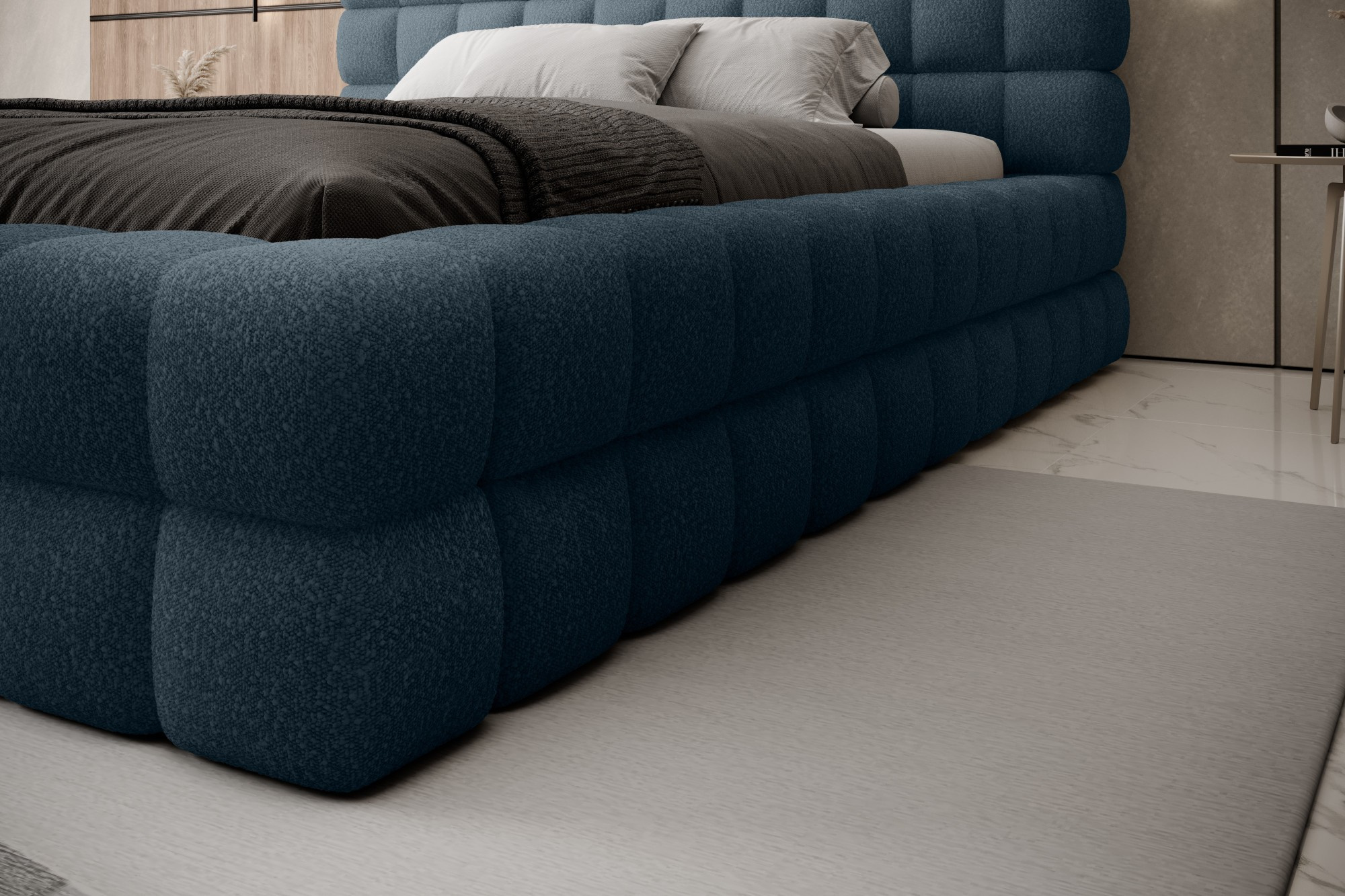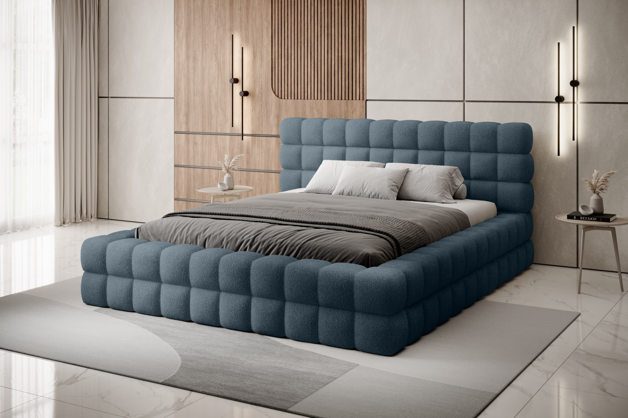 The Dizzle Bed in the version with an impressive width of 180 cm is the perfect solution for those who desire even more space for sleep, without sacrificing elegance and comfort. It utilizes T2130 foam, providing elasticity and a unique sleep comfort. With three different width options, 180 cm is a proposal for enthusiasts of spaciousness. The length of the bed is 225 cm, and its impressive height of 104 cm adds elegance to the entire construction.The seat height is 42 cm; however, it is recommended to add the mattress height for full usability comfort. Black plastic legs with a height of 2 cm ensure stability. The metal frame guarantees the durability of the construction, and one storage compartment makes the Dizzle Bed 180 a practical place for storing additional items.With 36 slats for even mattress support, the Dizzle Bed, whose shape resembles an elegant cube, introduces not only spaciousness but also stylish design and comfortable relaxation into your bedroom.