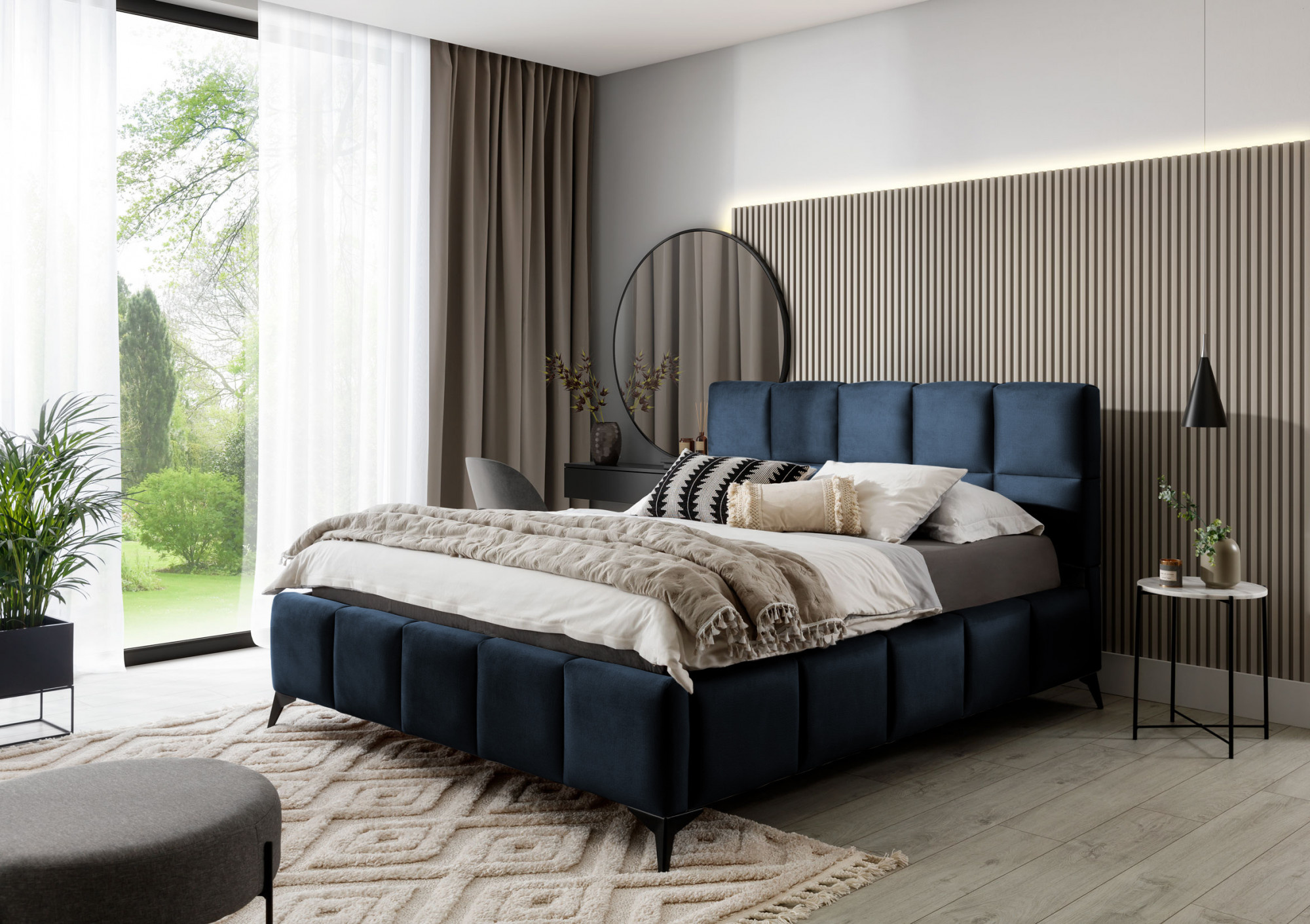 The Mist bed is a combination of modern design and glamour style, which brings a touch of elegance to any bedroom. The headrest has a soft foam filling covered with high-quality upholstery. Quilting, which decorates the Mist bed, adds style and character, and brings an air of modernity.The furniture is available in three widths of sleeping surface: 140, 160, 180 x 200 centimeters. This makes it easier to adjust the bed to the conditions in the apartment. Black steel legs with a length of as much as 13.5 centimeters make the bed give the impression of floating above the ground, which further optically enlarges the room in which the Mist bed will be placed. In addition, the furniture is also equipped with a bedding container, which is a very good solution for small spaces and allows you to keep the bedroom tidy.