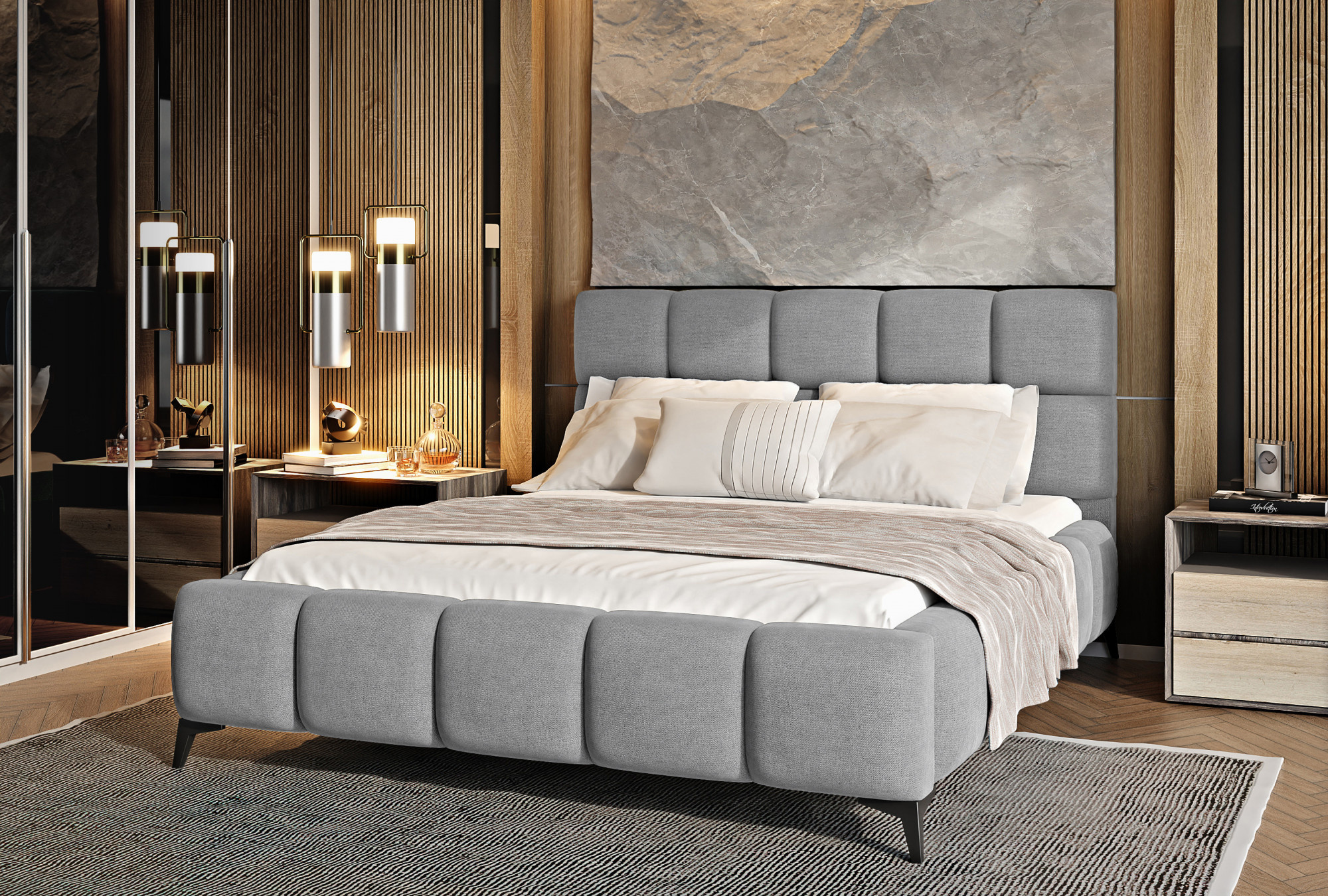 The Mist bed is a combination of modern design and glamour style, which brings a touch of elegance to any bedroom. The headrest has a soft foam filling covered with high-quality upholstery. Quilting, which decorates the Mist bed, adds style and character, and brings an air of modernity.The furniture is available in three widths of sleeping surface: 140, 160, 180 x 200 centimeters. This makes it easier to adjust the bed to the conditions in the apartment. Black steel legs with a length of as much as 13.5 centimeters make the bed give the impression of floating above the ground, which further optically enlarges the room in which the Mist bed will be placed. In addition, the furniture is also equipped with a bedding container, which is a very good solution for small spaces and allows you to keep the bedroom tidy.