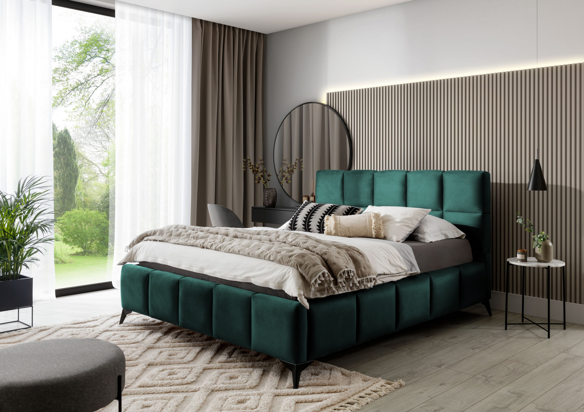 The Mist bed is a combination of modern design and glamour style, which brings a touch of elegance to any bedroom. The headrest has a soft foam filling covered with high-quality upholstery. Quilting, which decorates the Mist bed, adds style and character, and brings an air of modernity.The furniture is available in three widths of sleeping surface: 140, 160, 180 x 200 centimeters. This makes it easier to adjust the bed to the conditions in the apartment. Black steel legs with a length of as much as 13.5 centimeters make the bed give the impression of floating above the ground, which further optically enlarges the room in which the Mist bed will be placed. In addition, the furniture is also equipped with a bedding container, which is a very good solution for small spaces and allows you to keep the bedroom tidy.